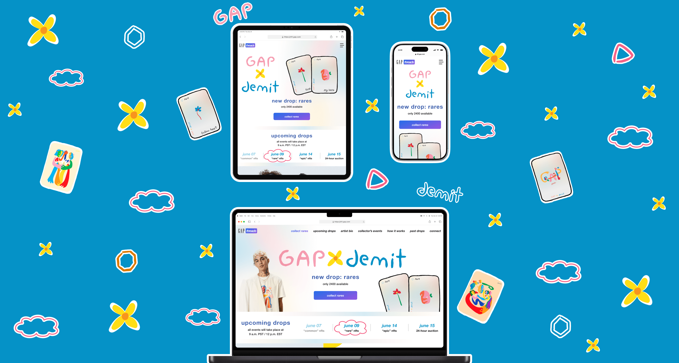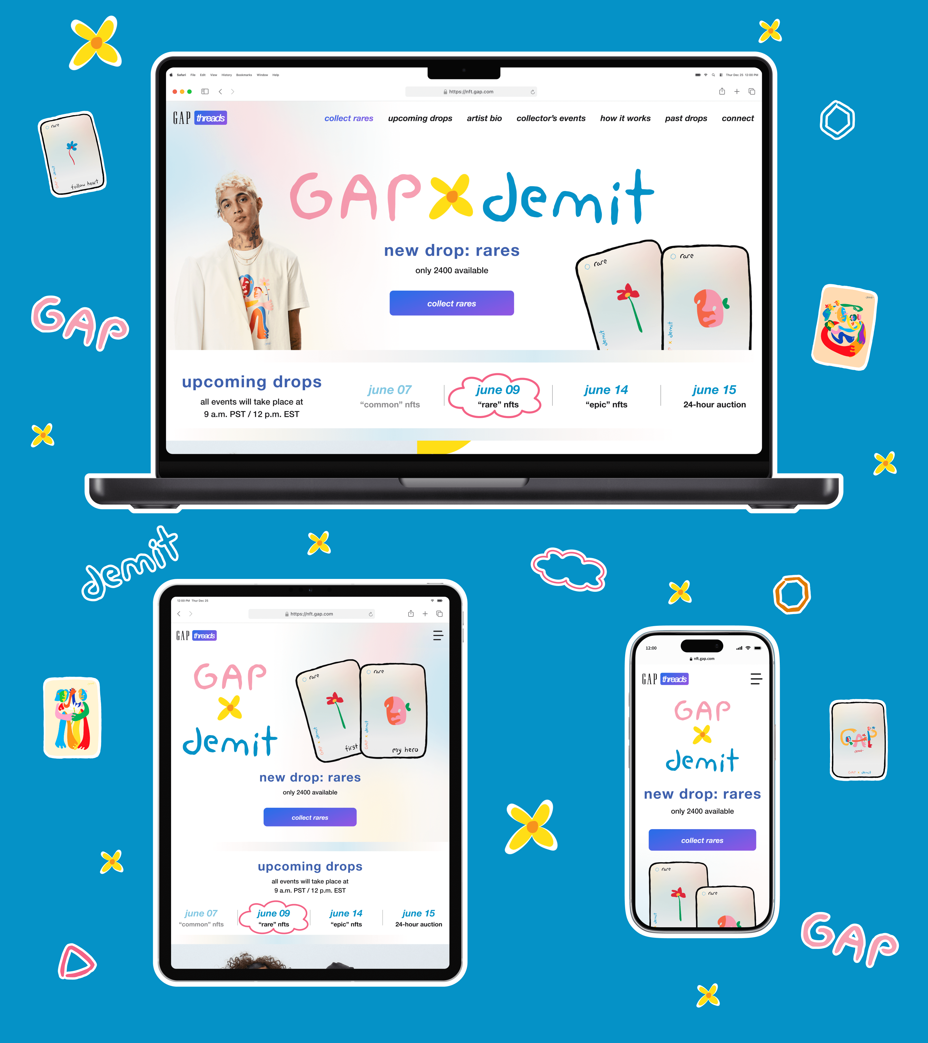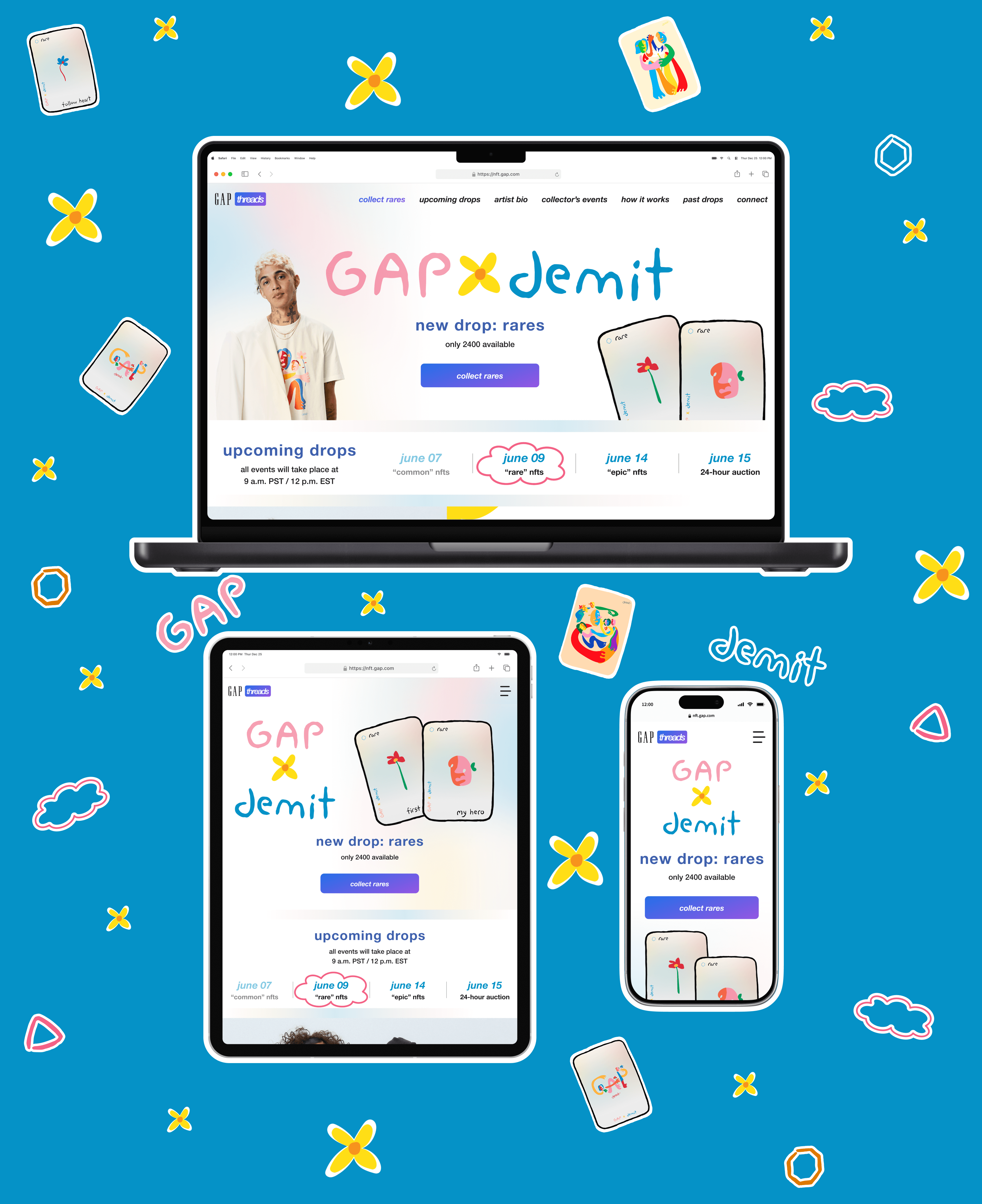 Accessibility doesn’t limit creativity, and it can create a memorable design challenge. This challenge occurred when Gap Threads collaborated with Demit Omphroy, an artist with a vibrant style that clashed with our existing web aesthetic.