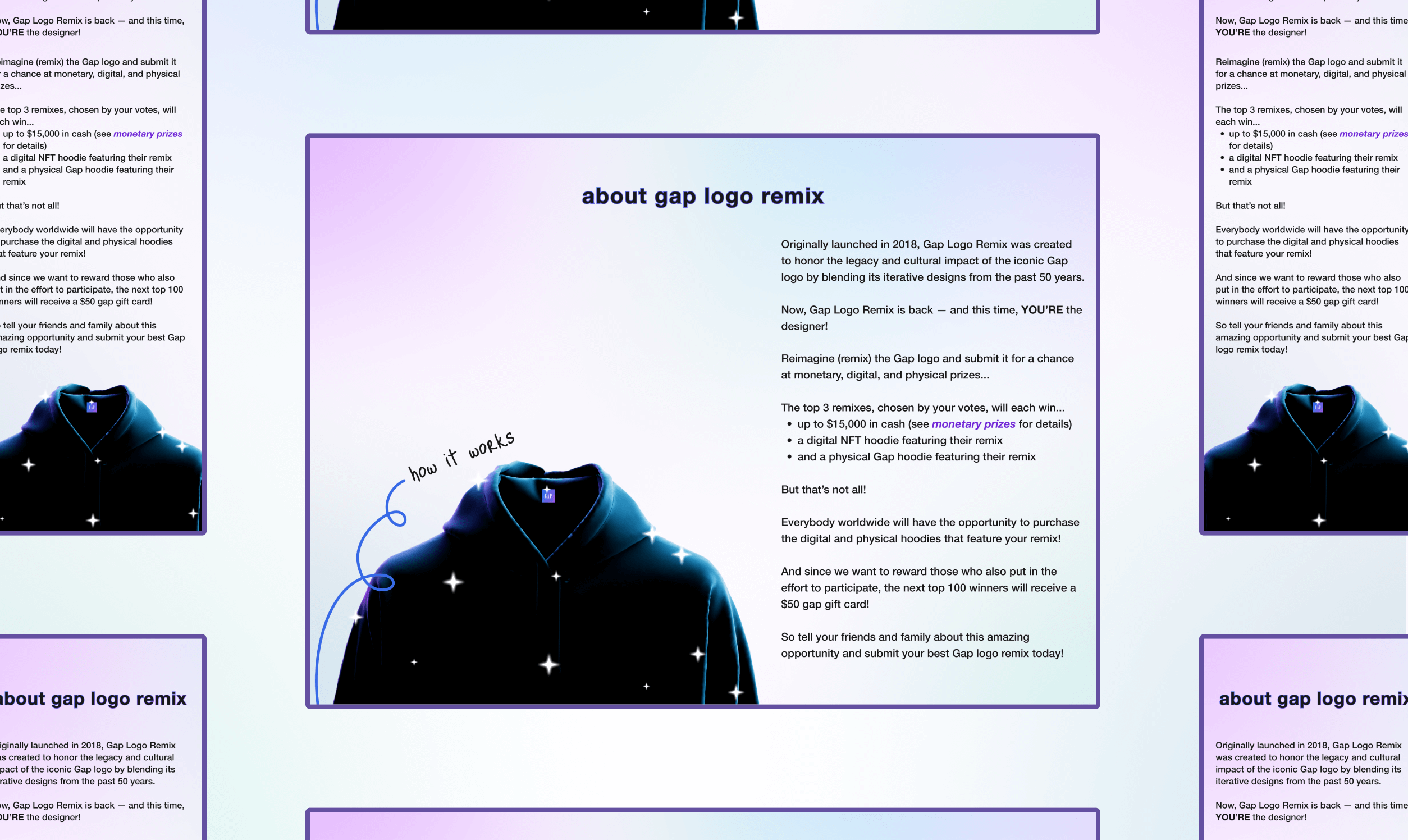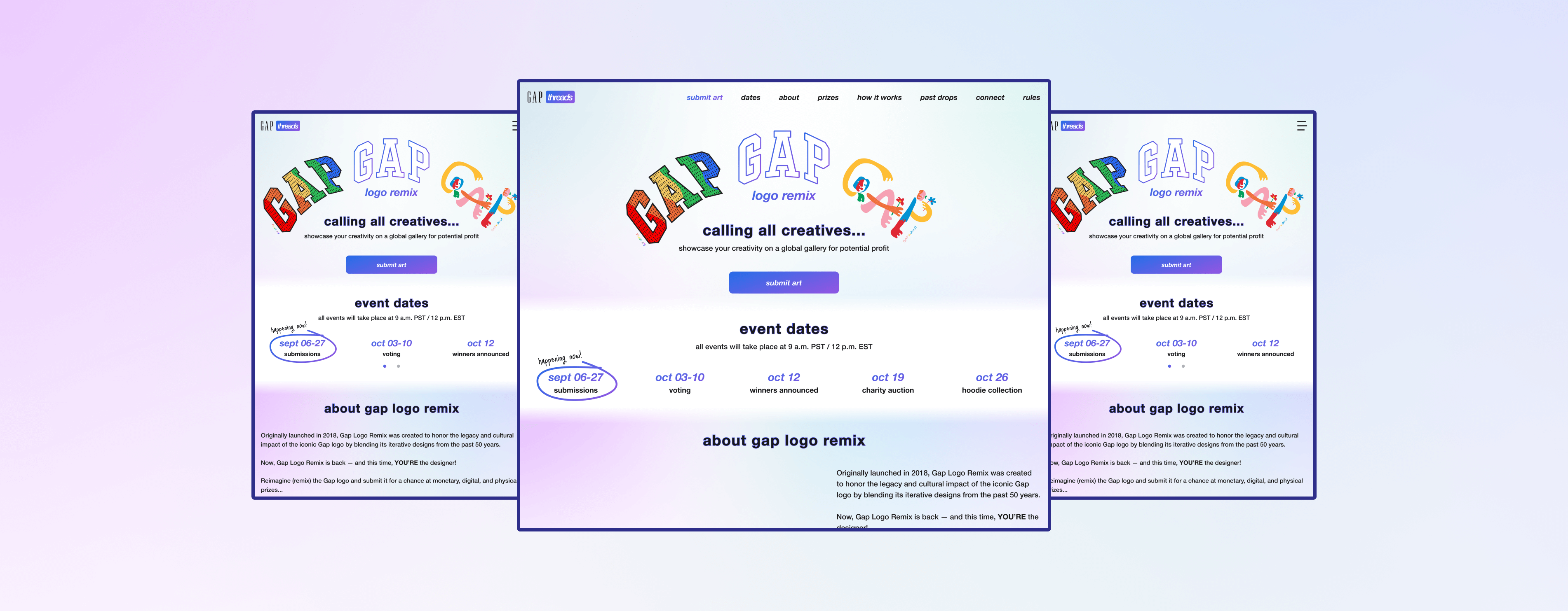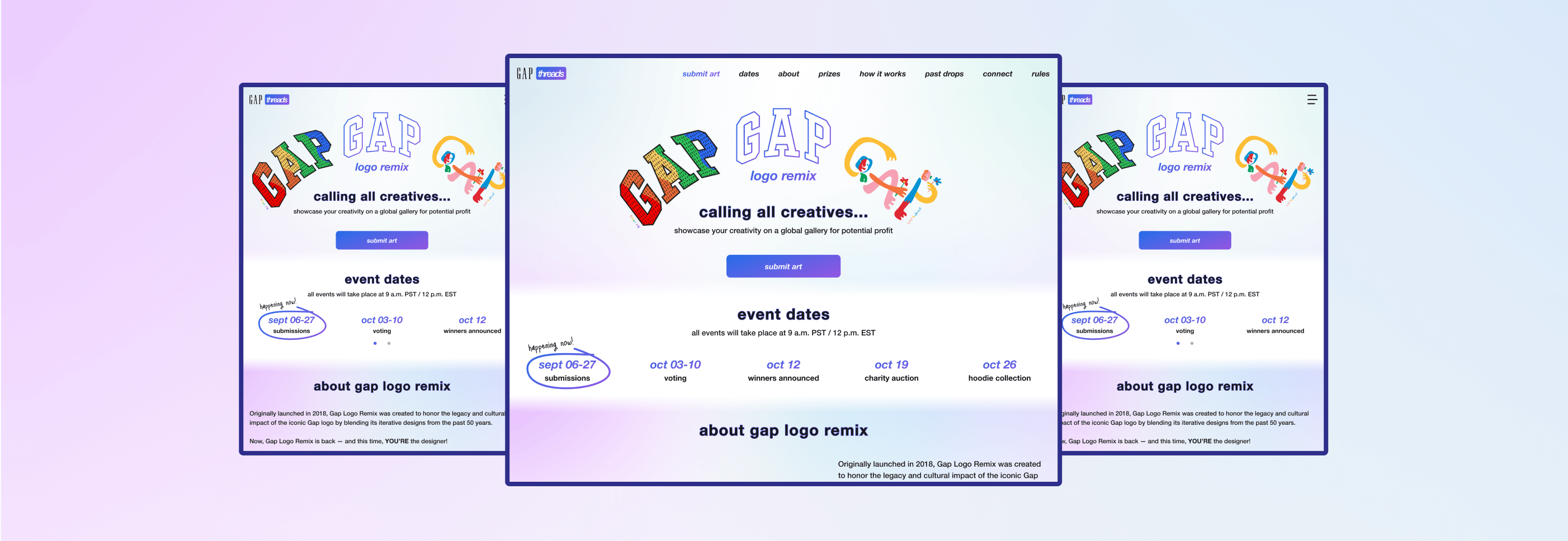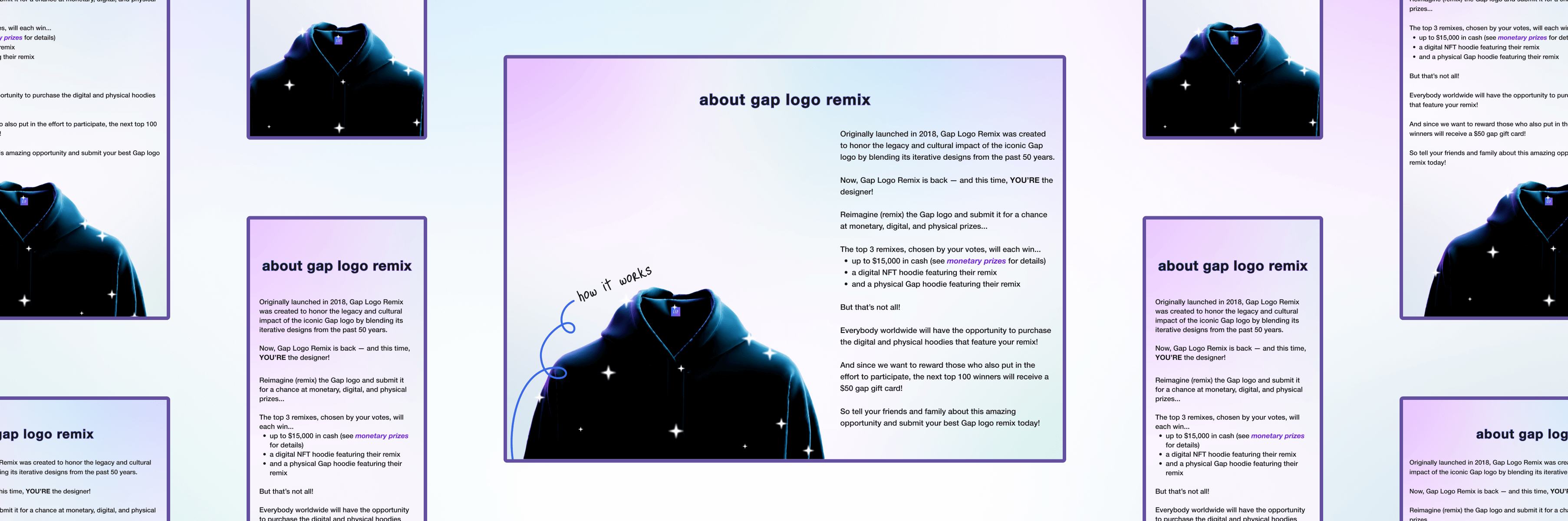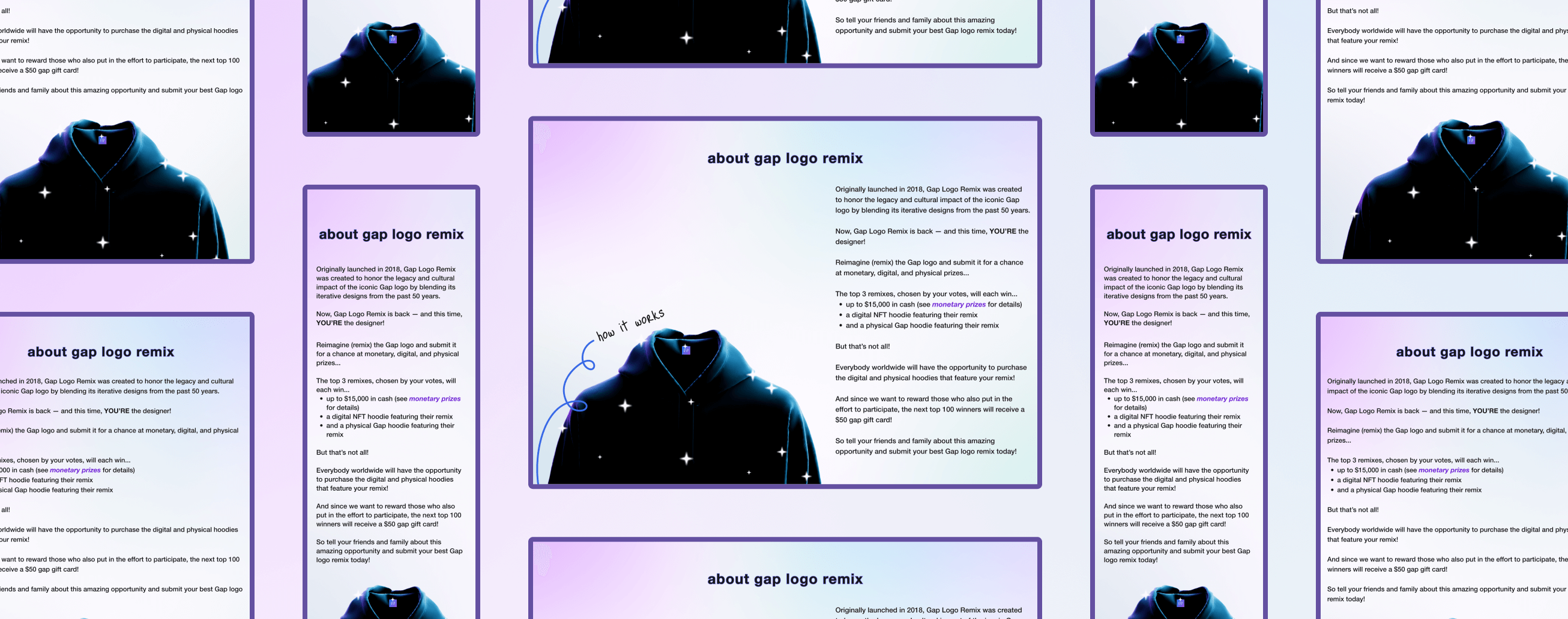 Beneath the top event date section, I added an “About Gap Logo Remix” area to explain its purpose. As the event unfolded, this section was updated with more relevant copy.