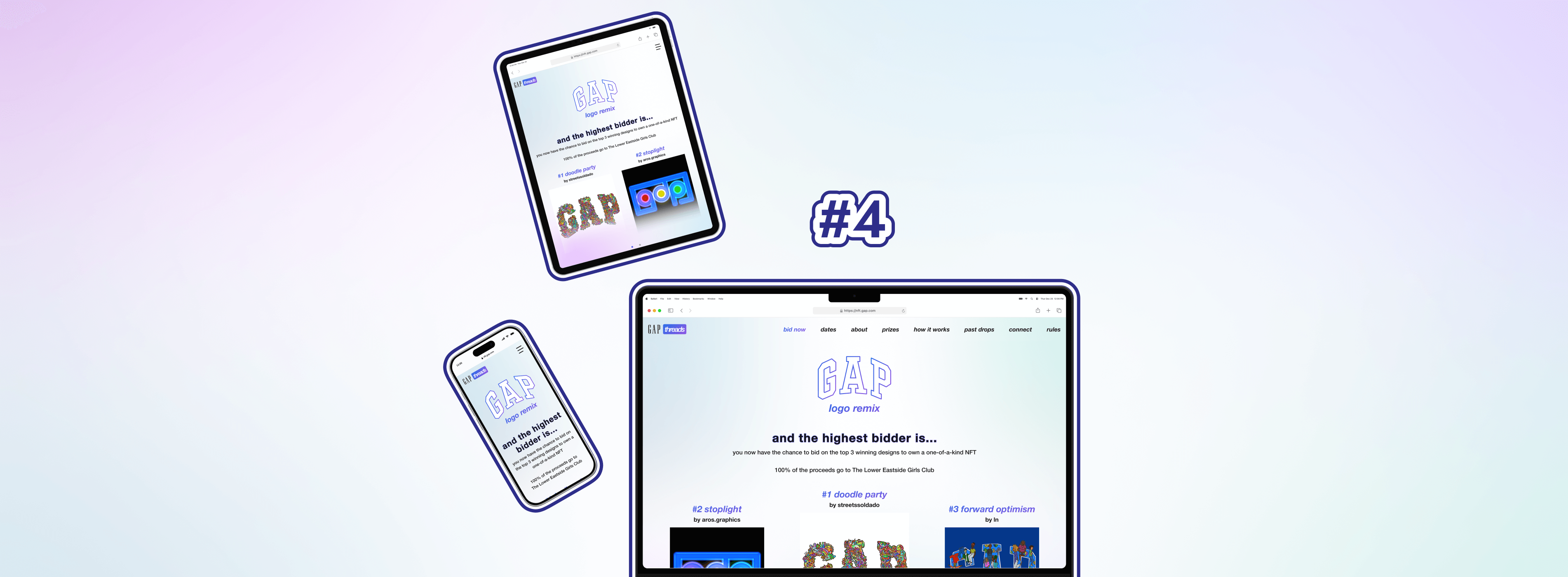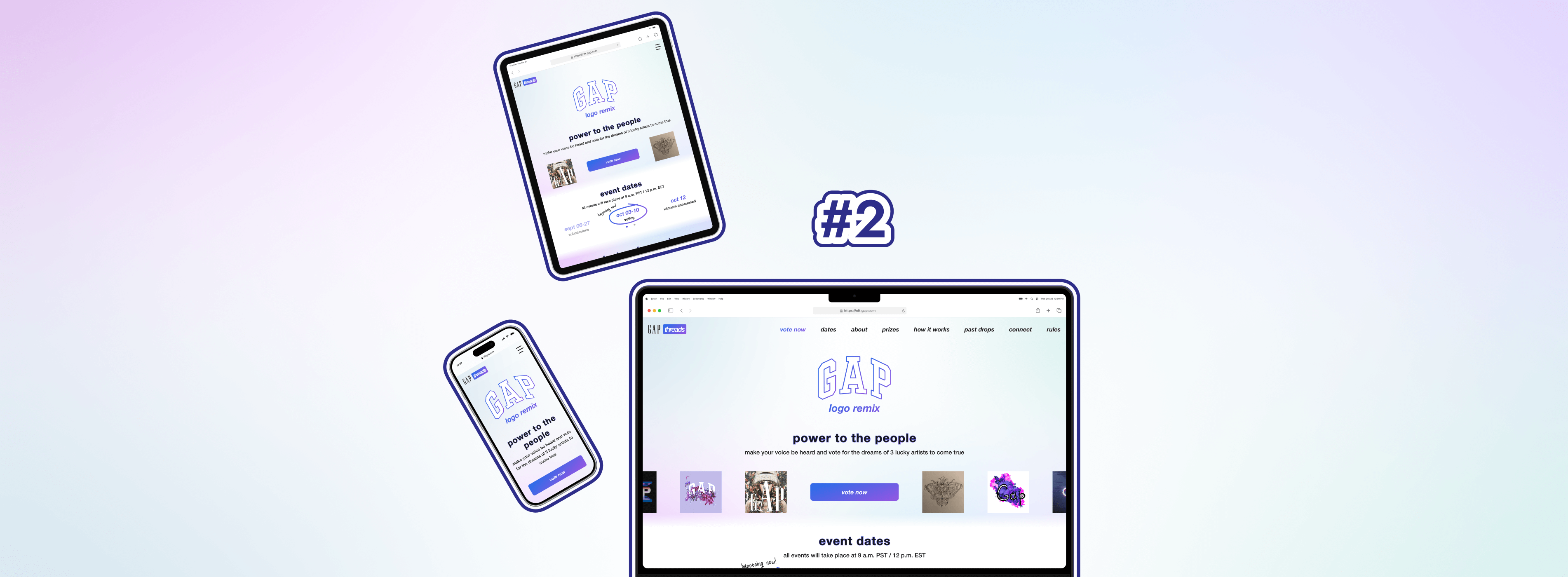 I had complete creative control over the Gap Threads landing page, some control over the Gap.com voting experience, and minimal control over the Interpop auction experience.