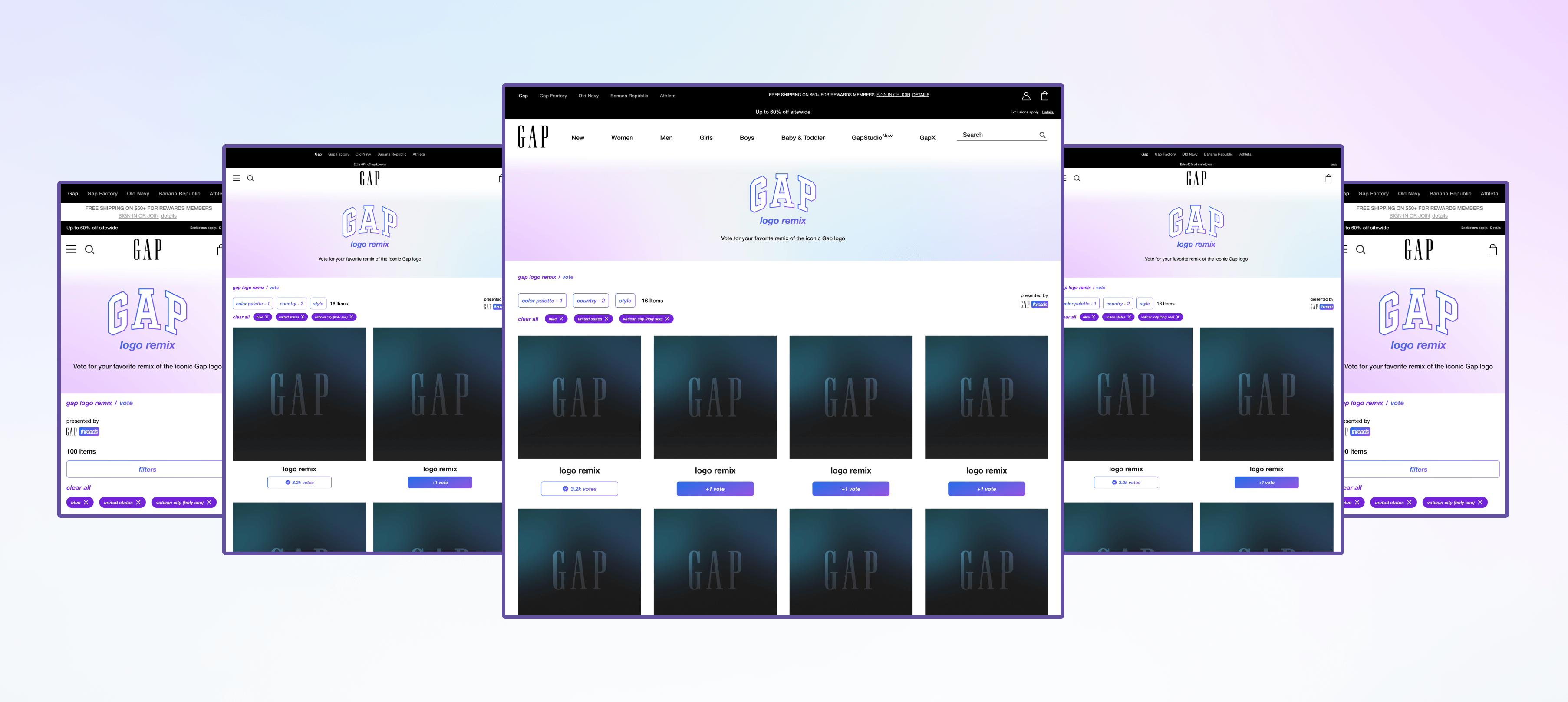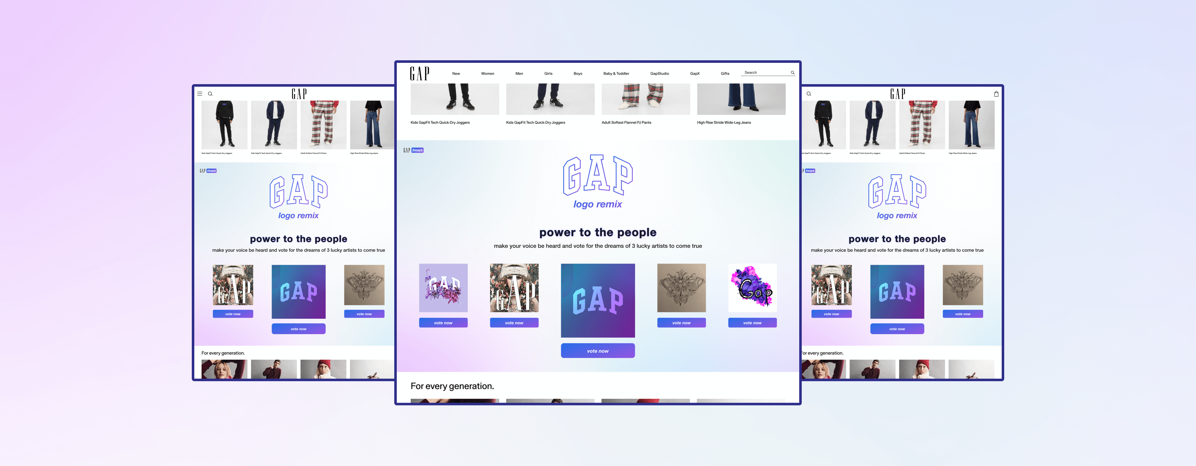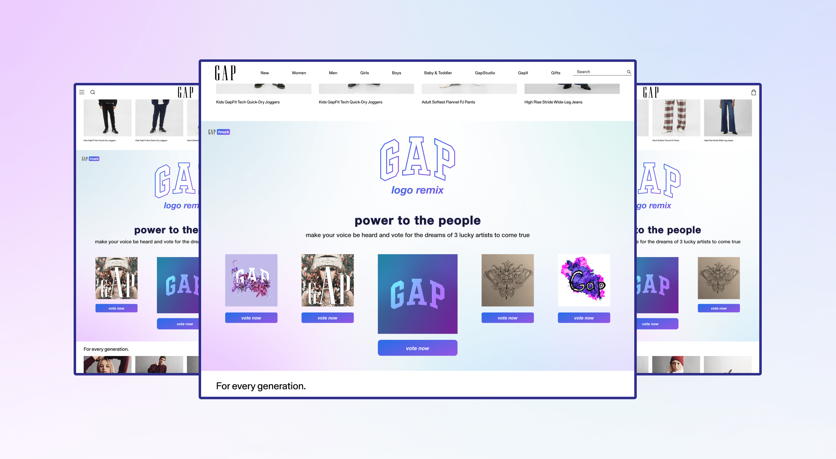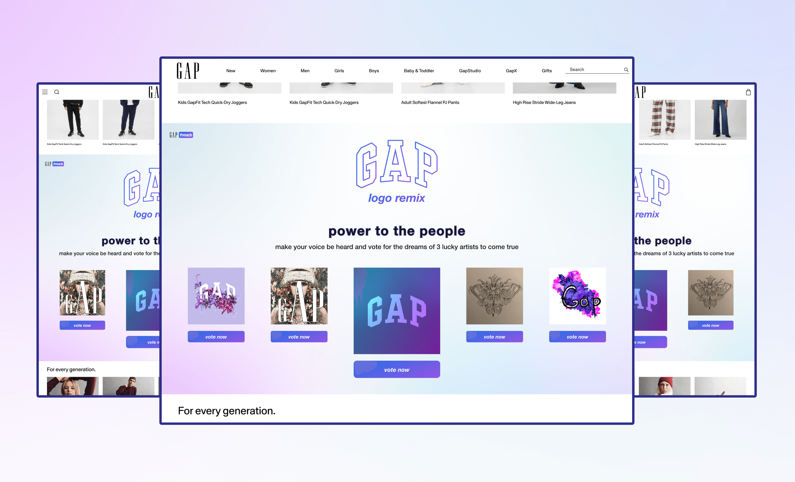 During this phase of Gap Logo Remix, users could share and vote for their favorite designs, learn about the artists, and more.
