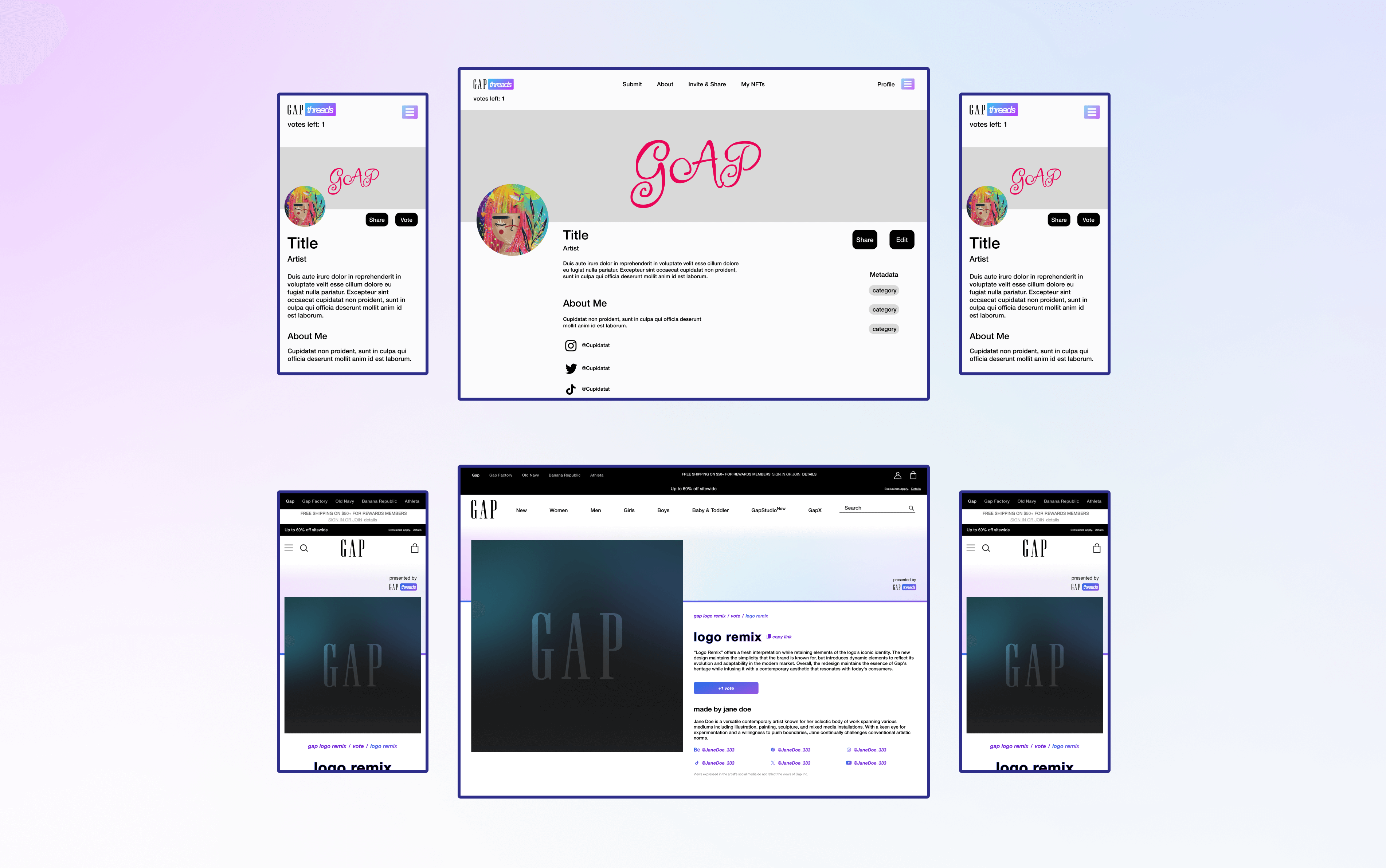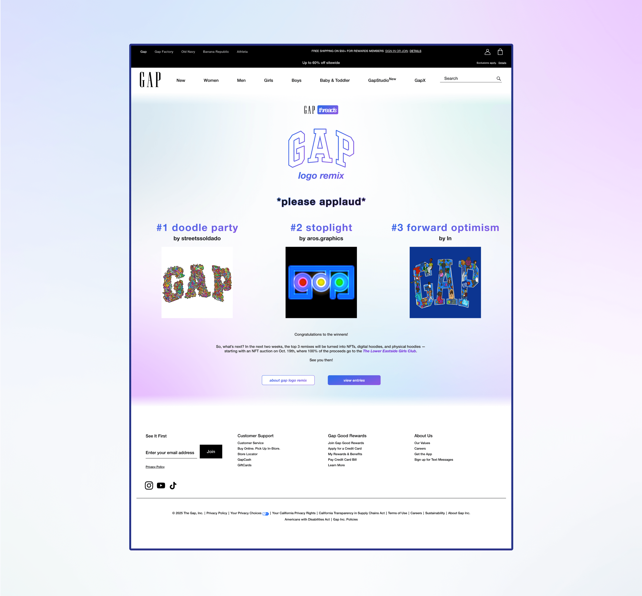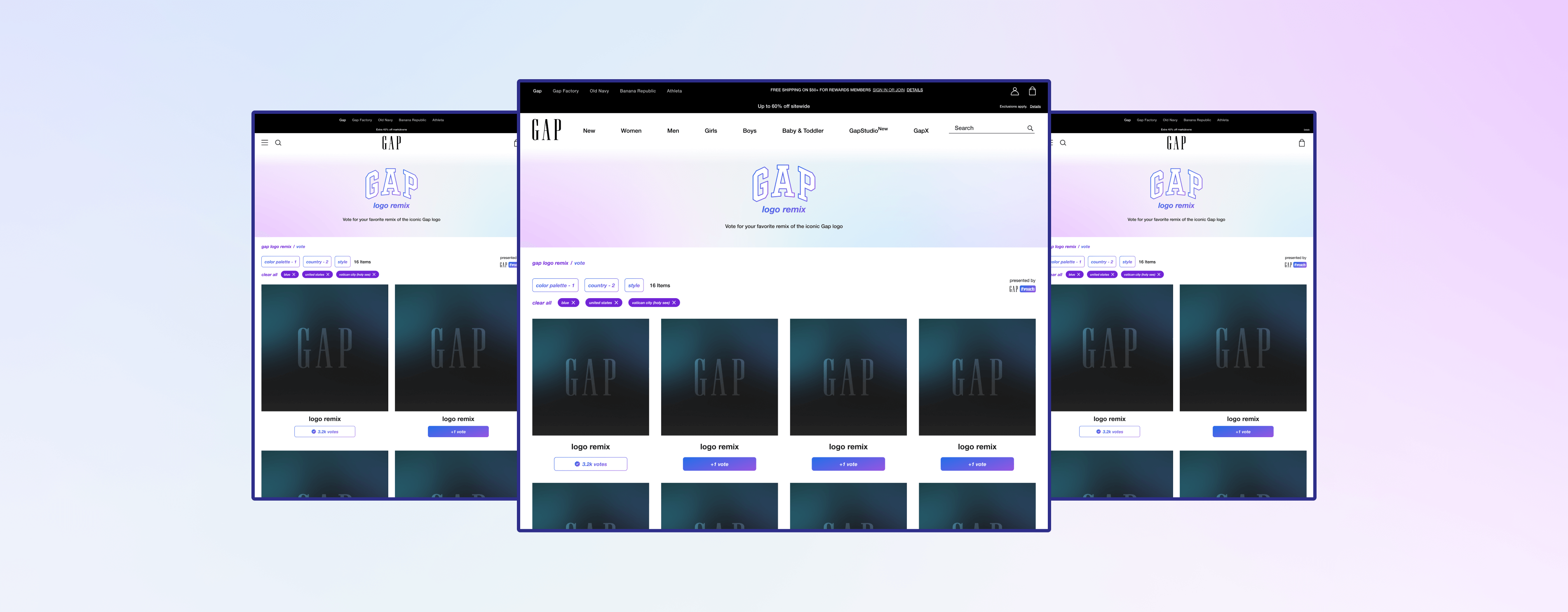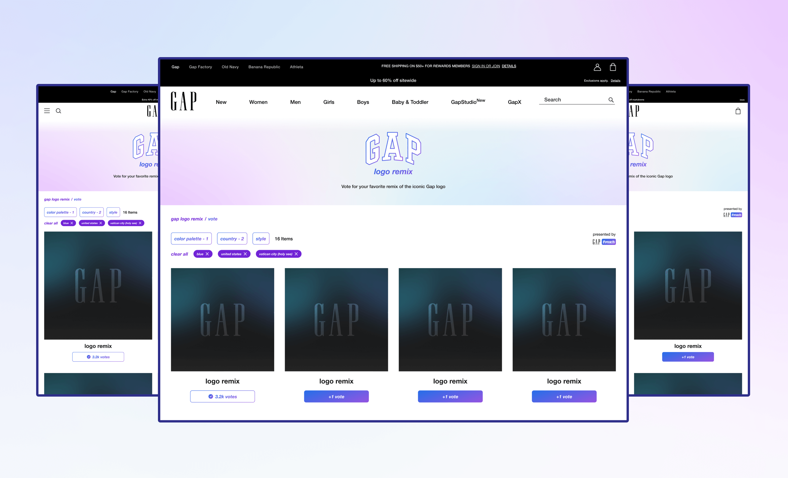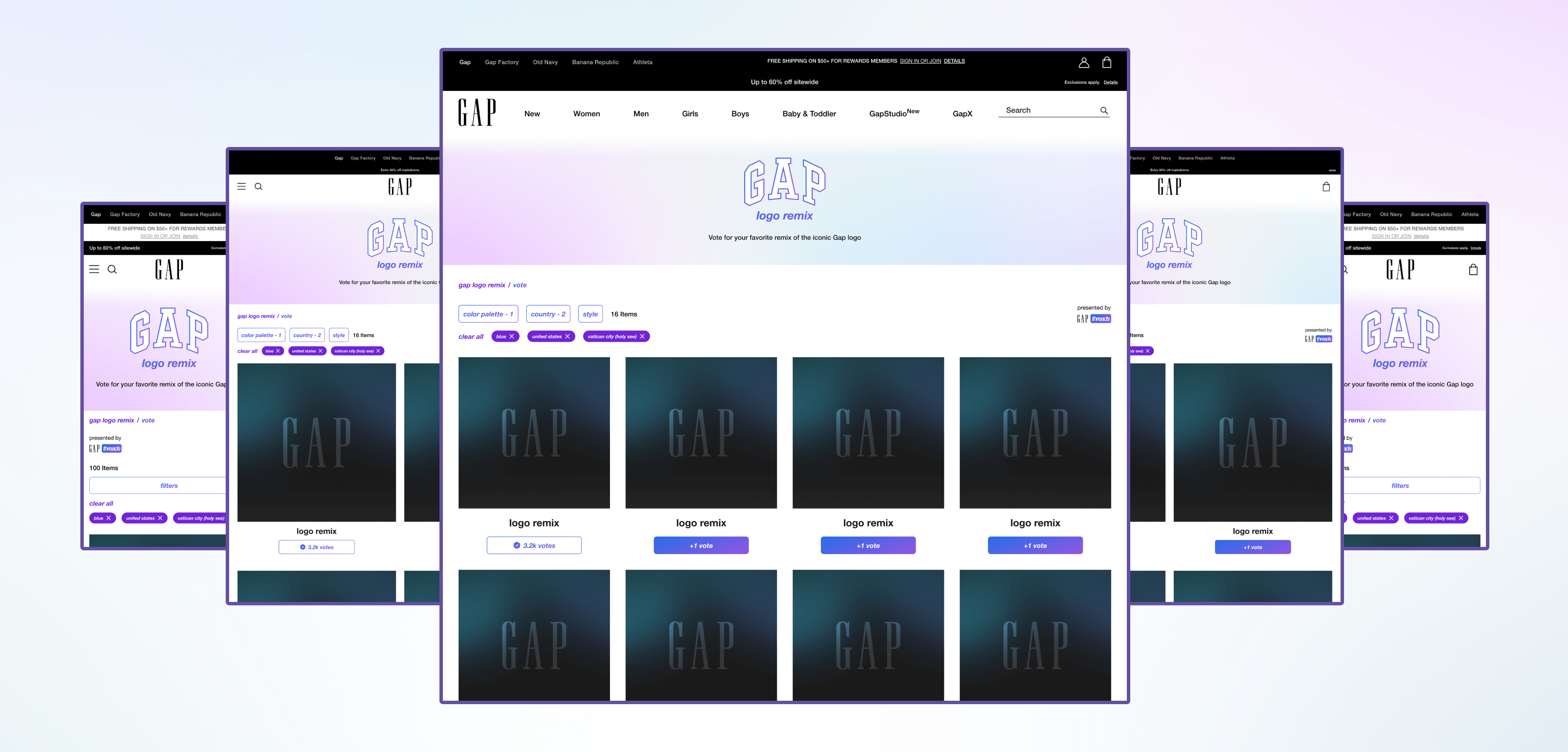 During this phase of Gap Logo Remix, users could share and vote for their favorite designs, learn about the artists, and more.