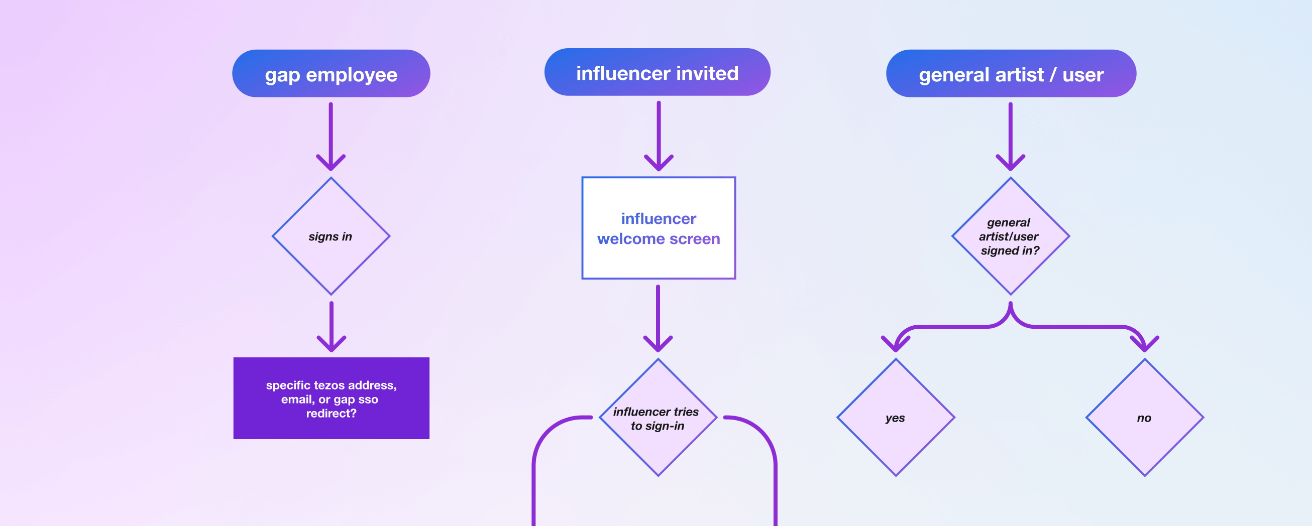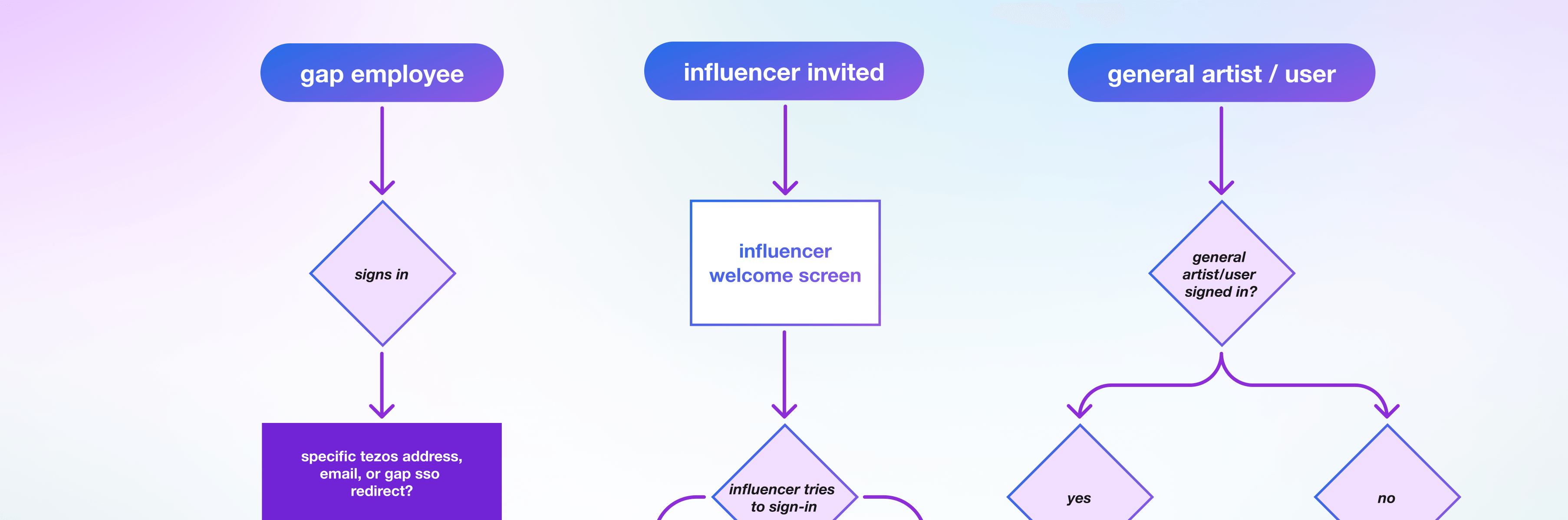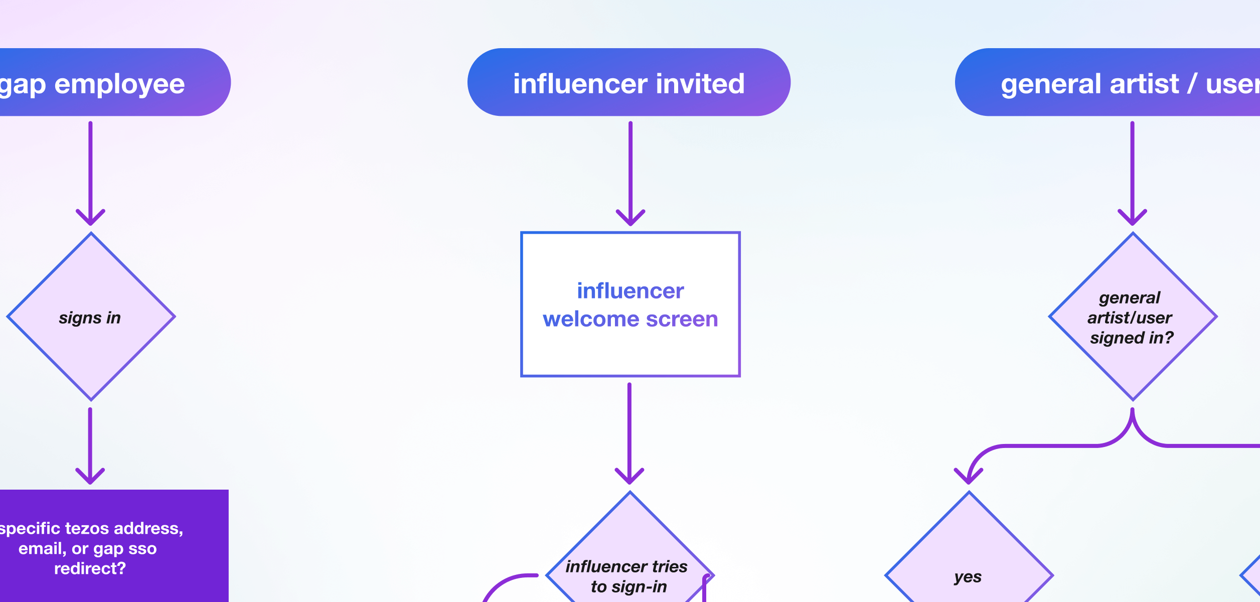 From the beginning, my team prioritized community engagement; therefore, it was decided that we were going to invite Web3 and art influencers to participate, which would hopefully influence their followers to participate as well. With that in mind, I created an extensive flow to capture learning about Gap Logo Remix, submitting art, and more.