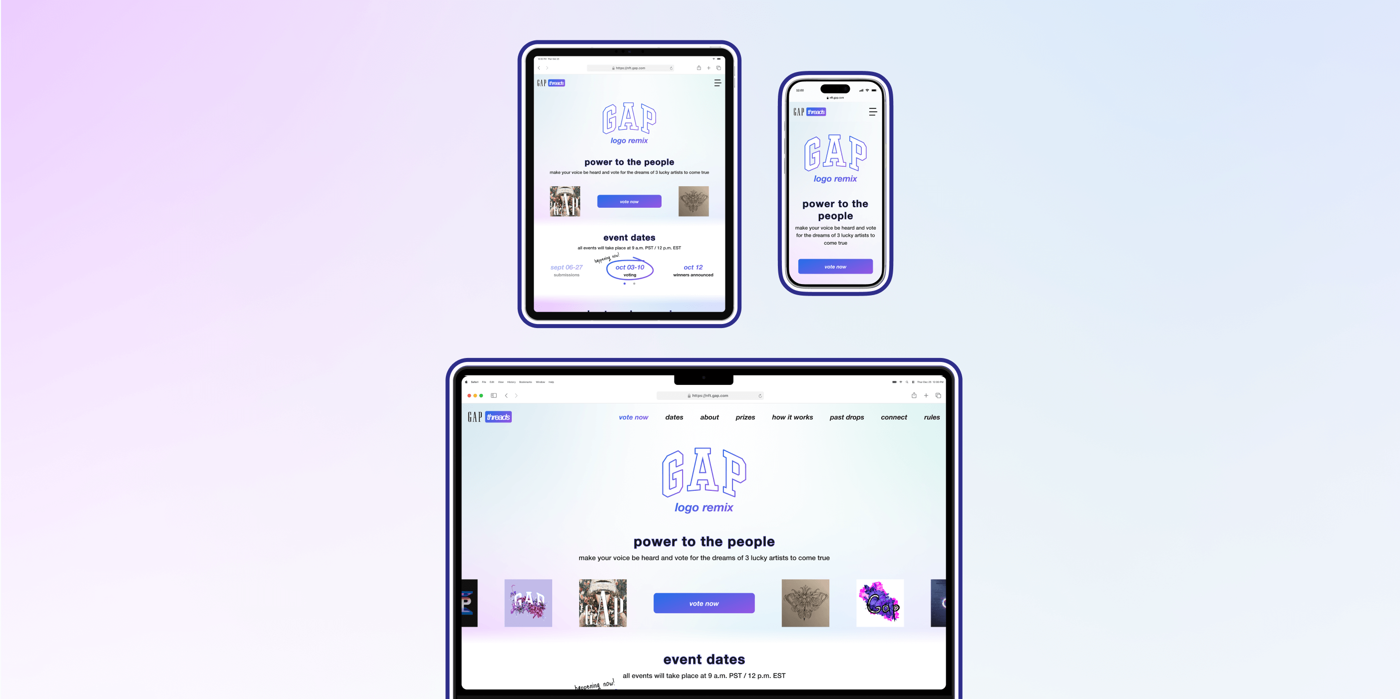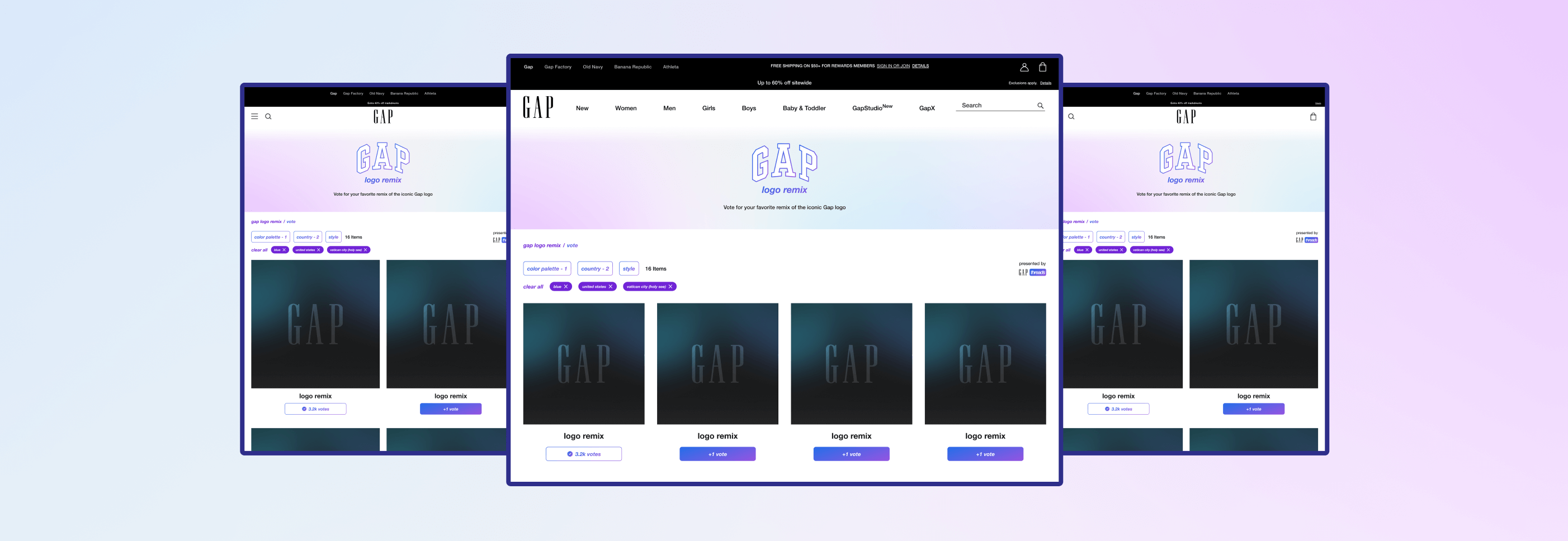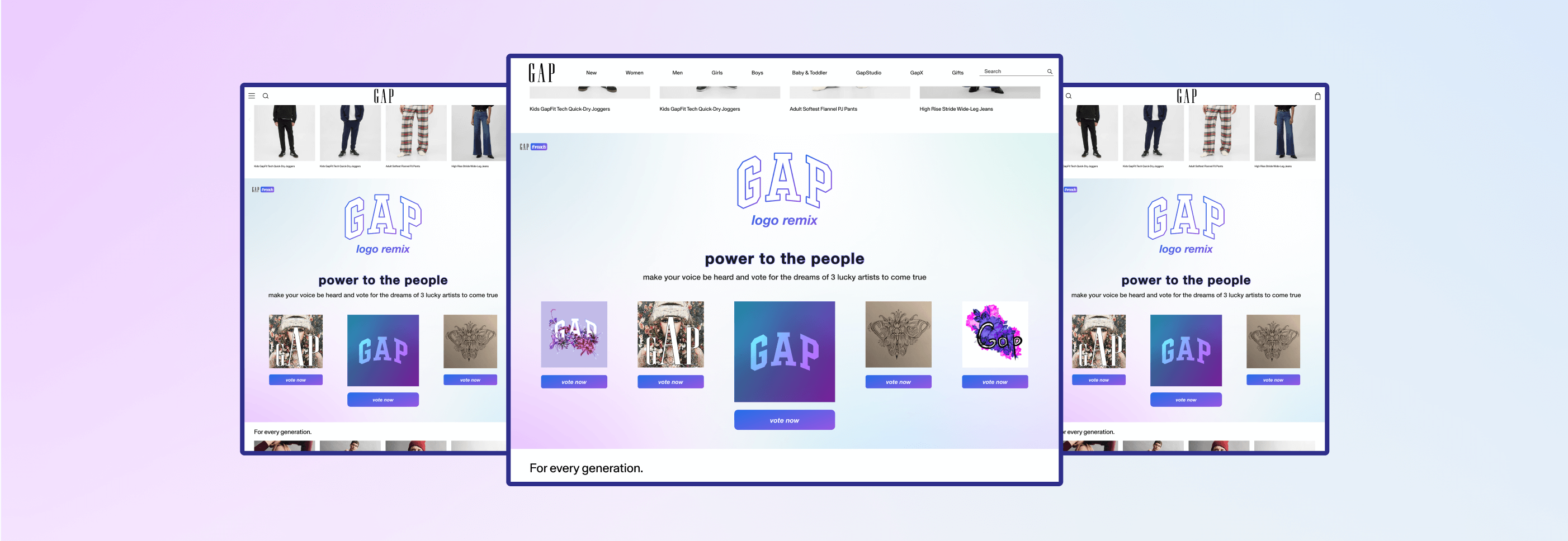 Since the external host of Gap Logo Remix fell through and the planned launch date was approaching soon, my team quickly found a solution for hosting internally: Athleta had a digital experience where its users could vote, so we repurposed it.