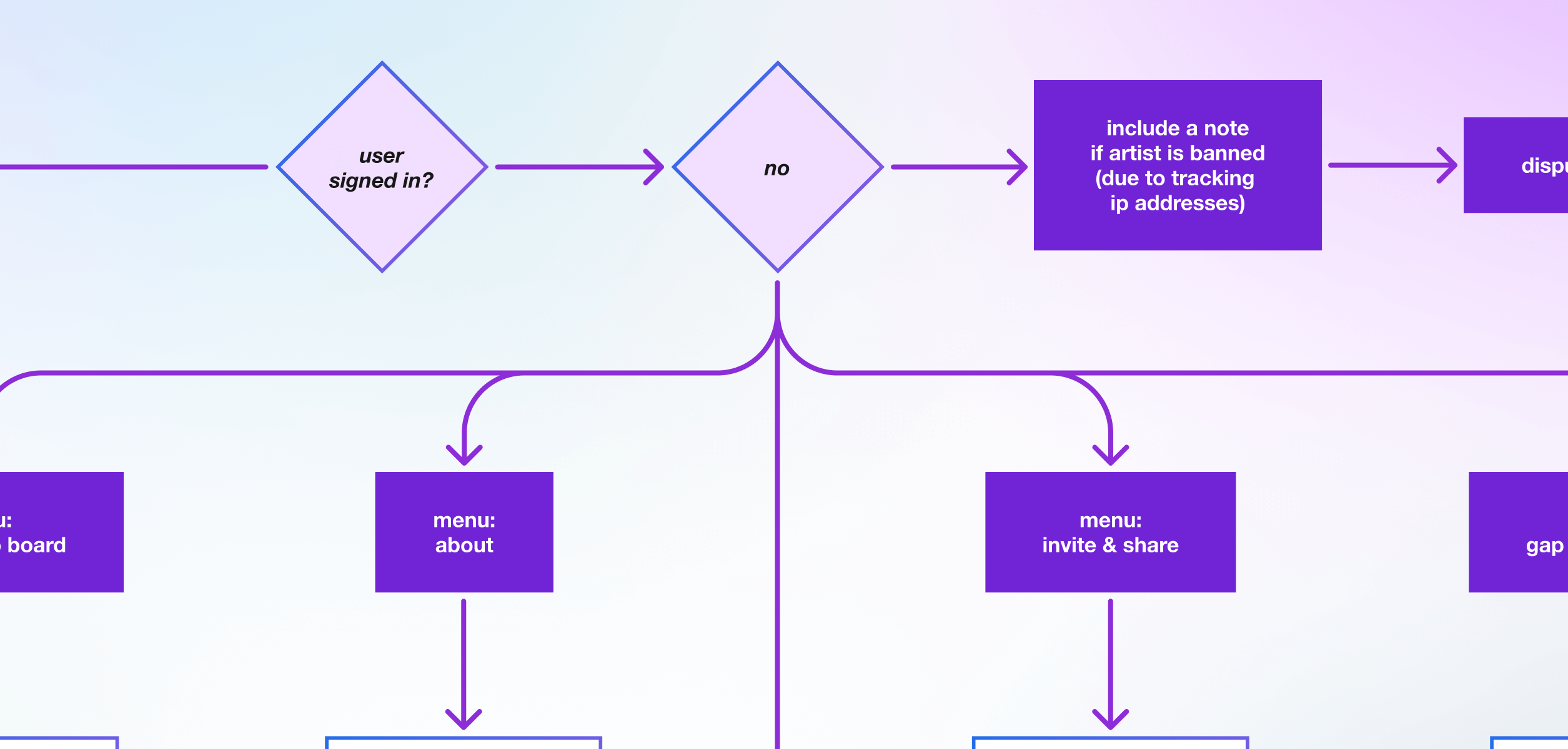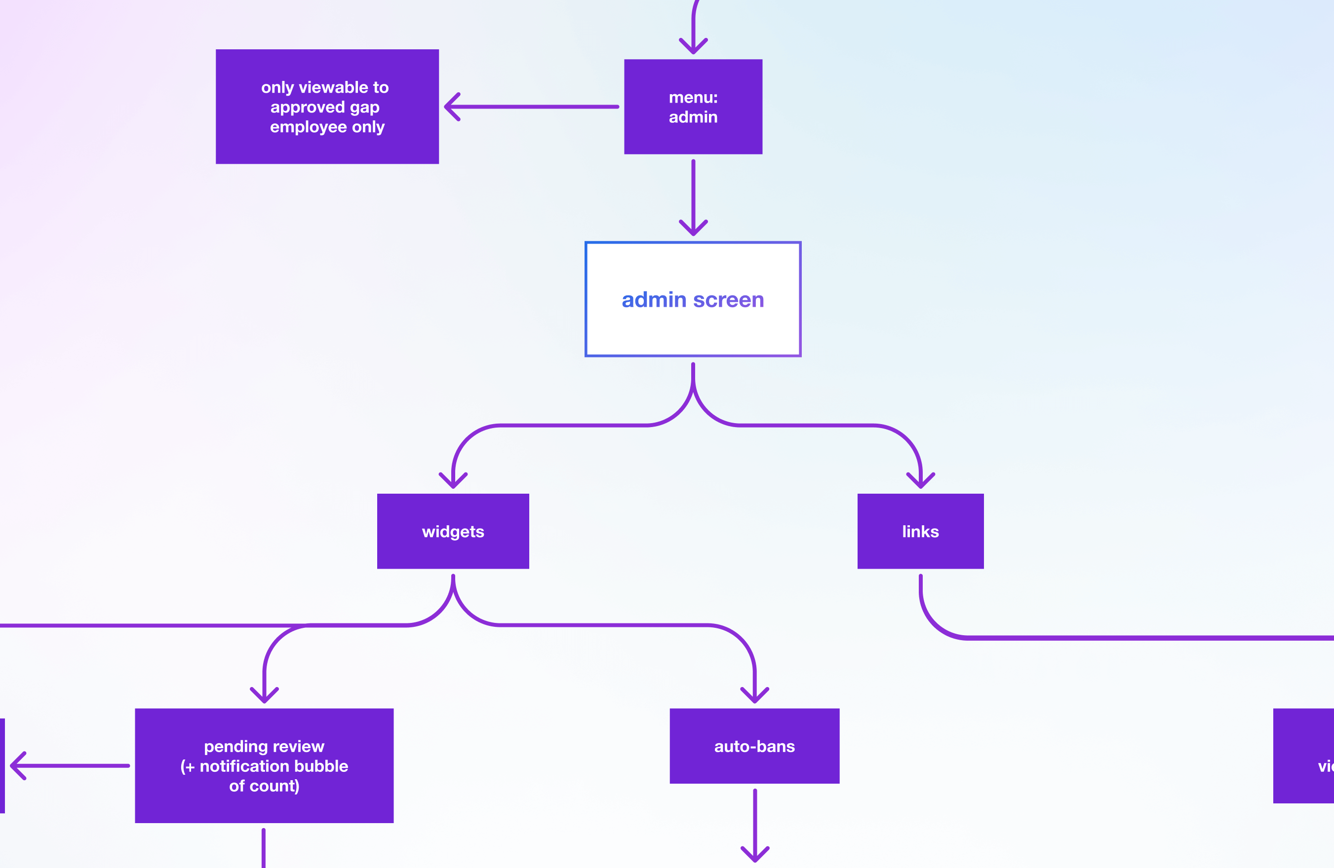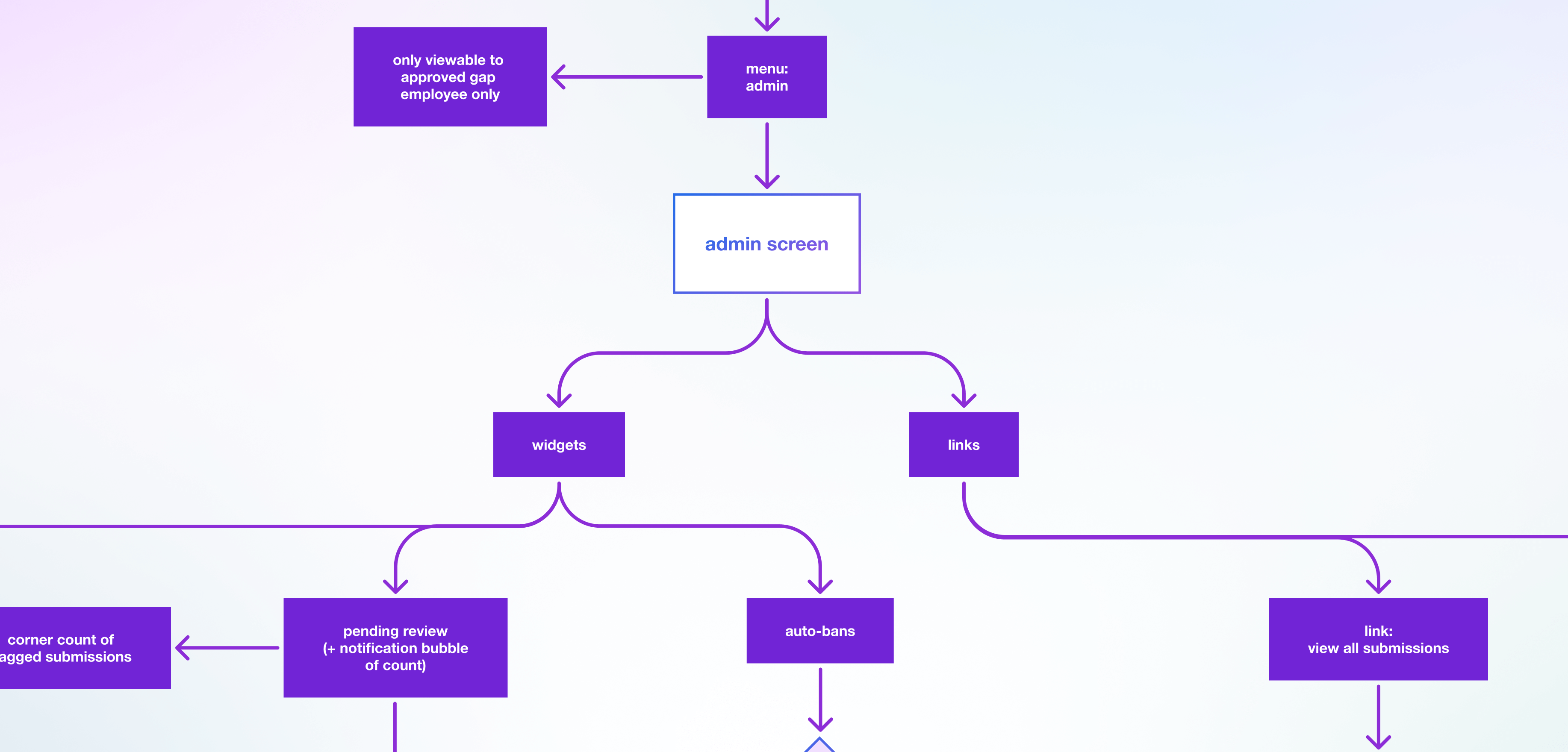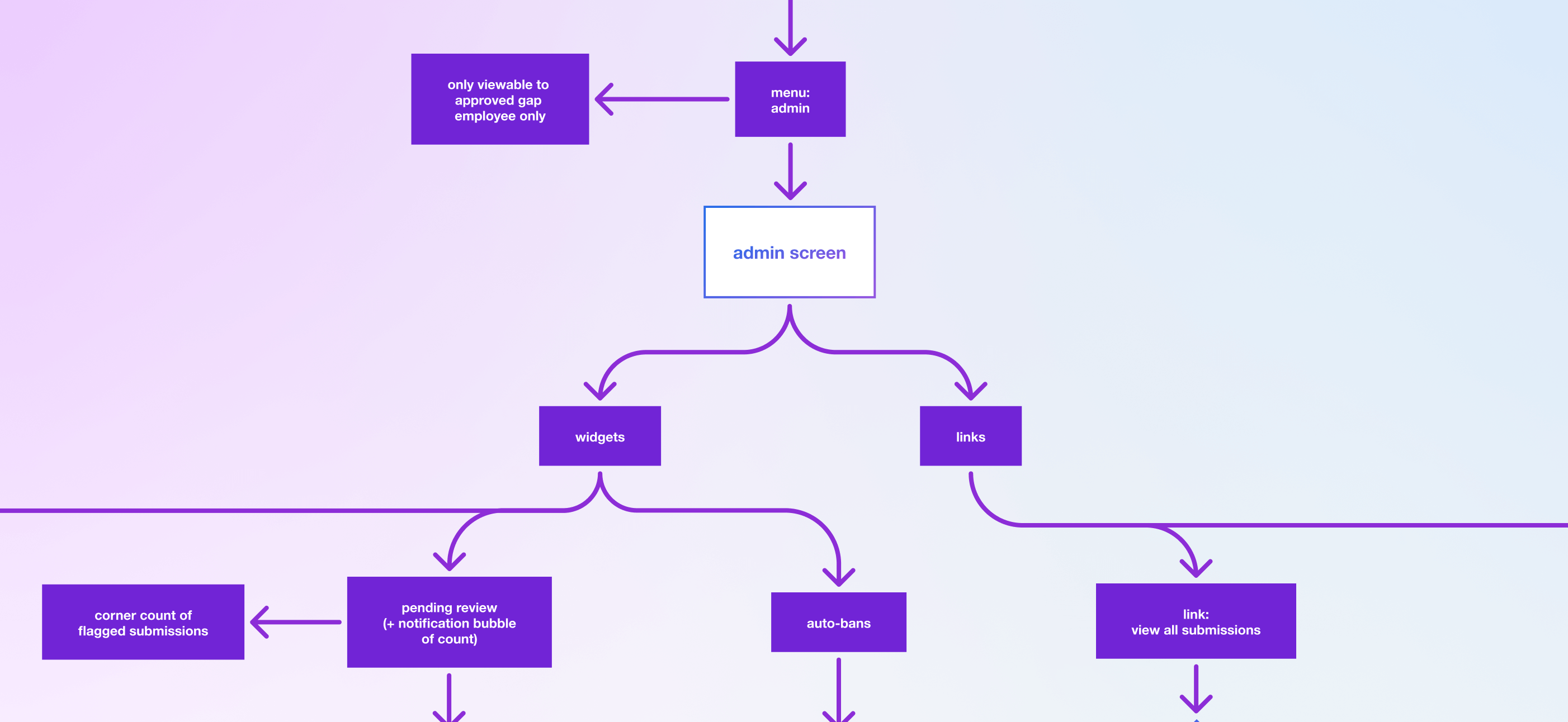 Our external partner, who would host the whole Gap Logo Remix experience, made it clear that I had full creative freedom. So after gathering my design inspiration, I began mapping out three big user flows for the overall contest experience: