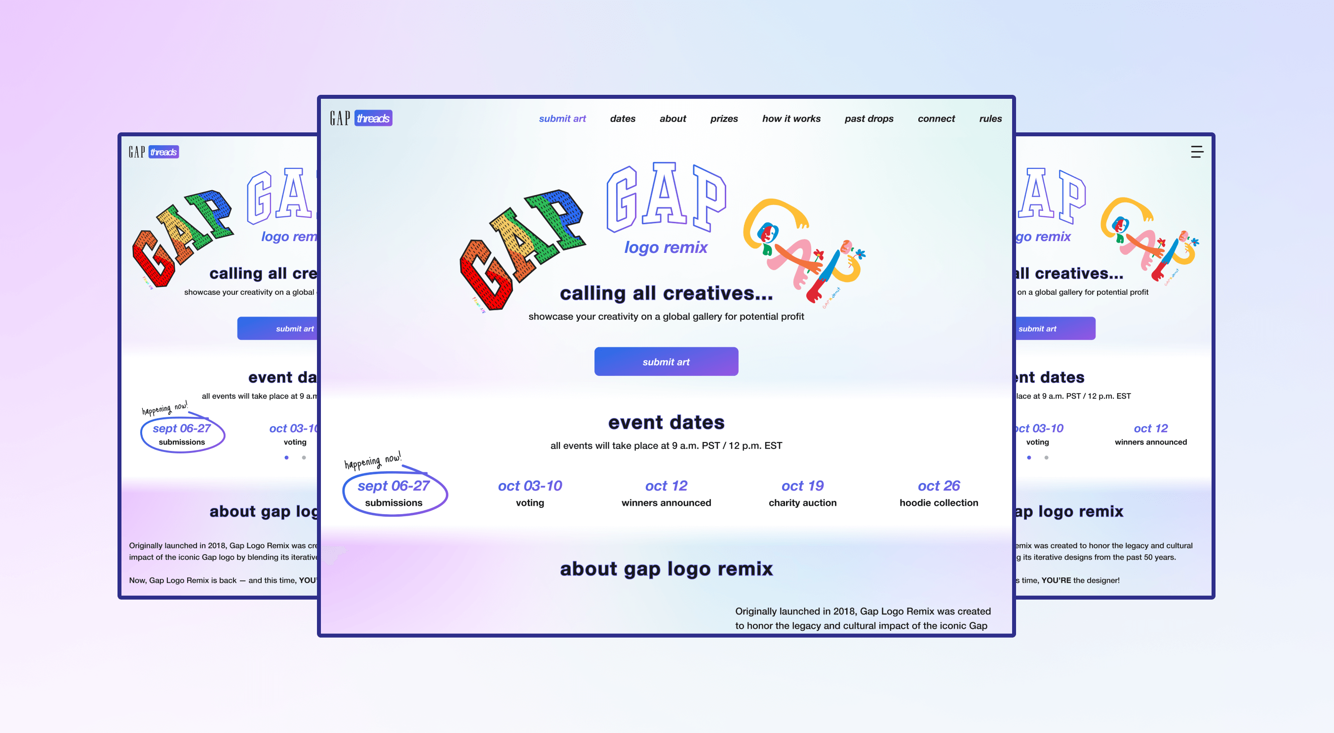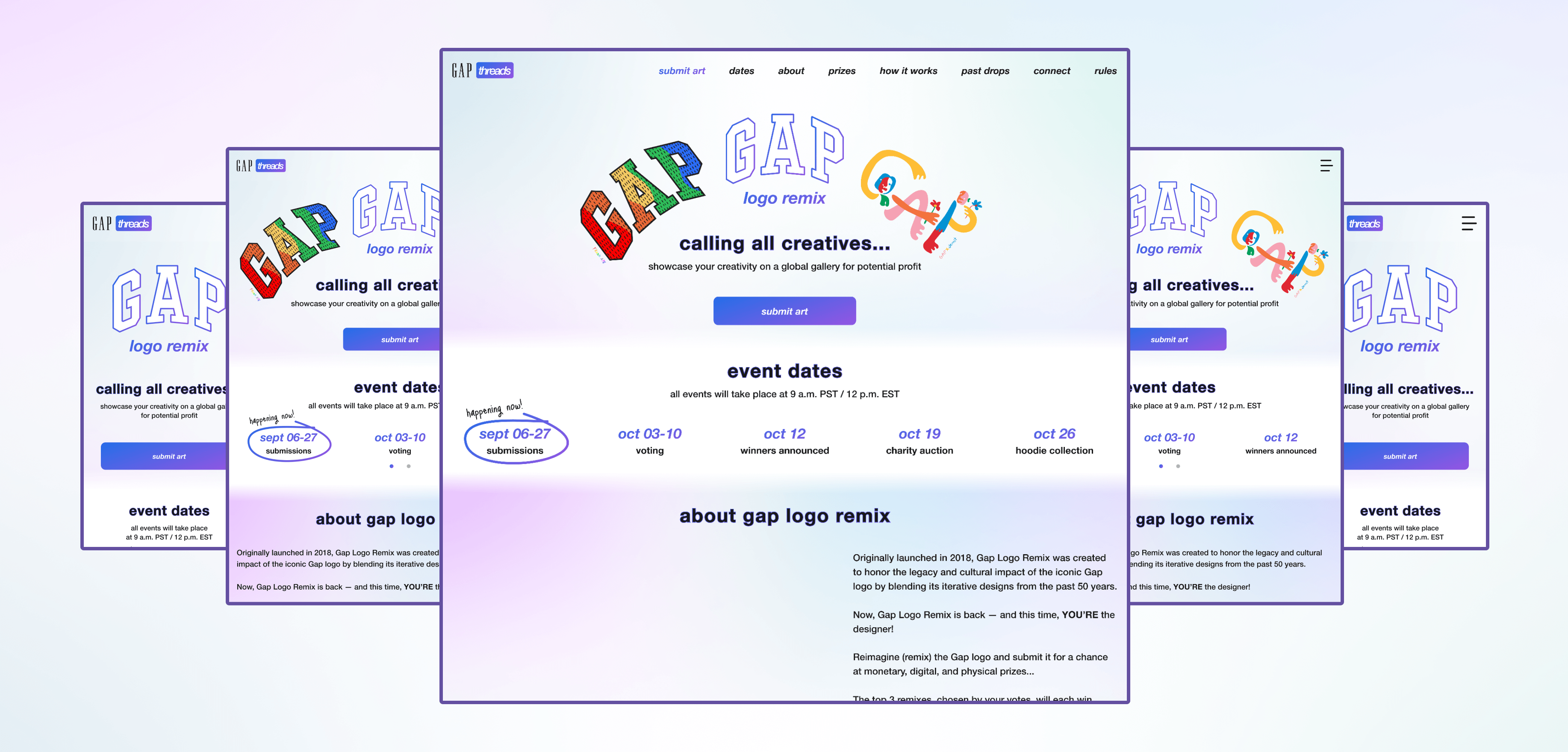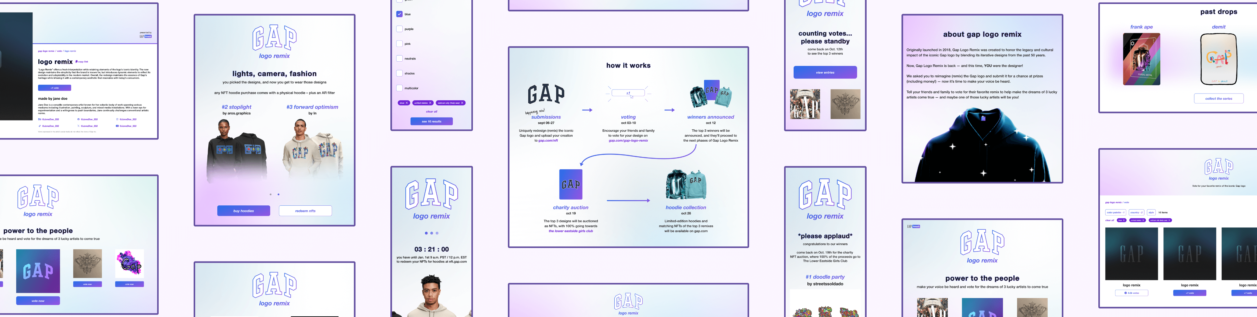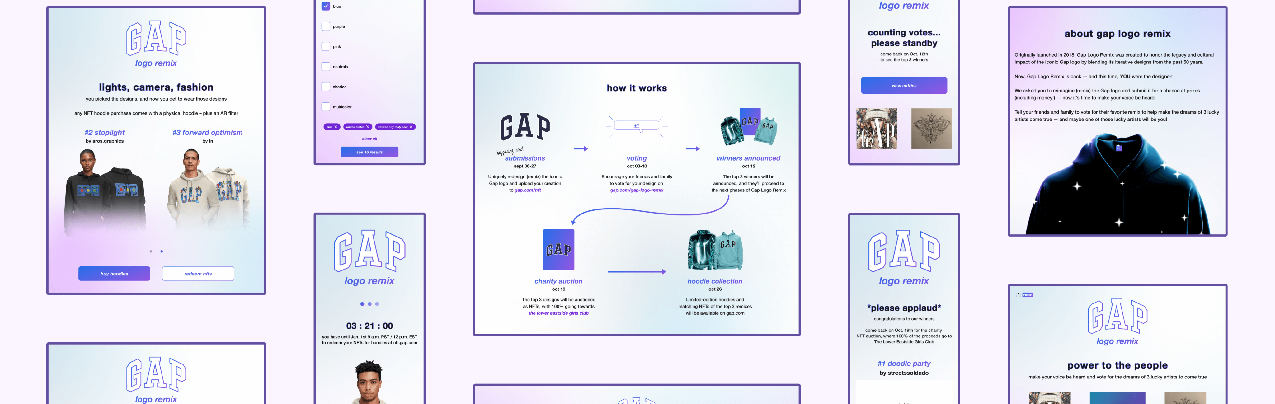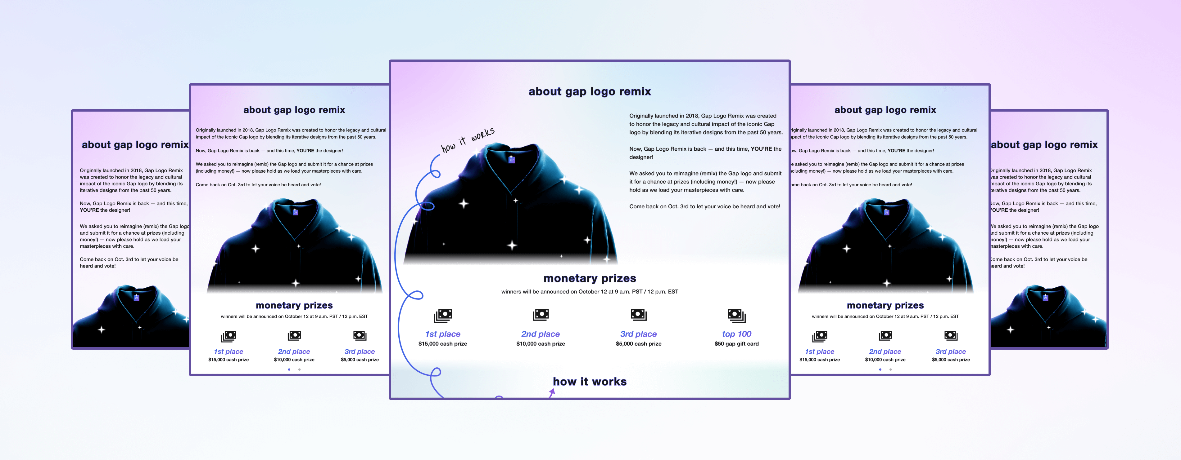 Gap Logo Remix was split into five phases, with each needing its own set of marketing material, social media & web graphics, and, of course, UI/UX designs: