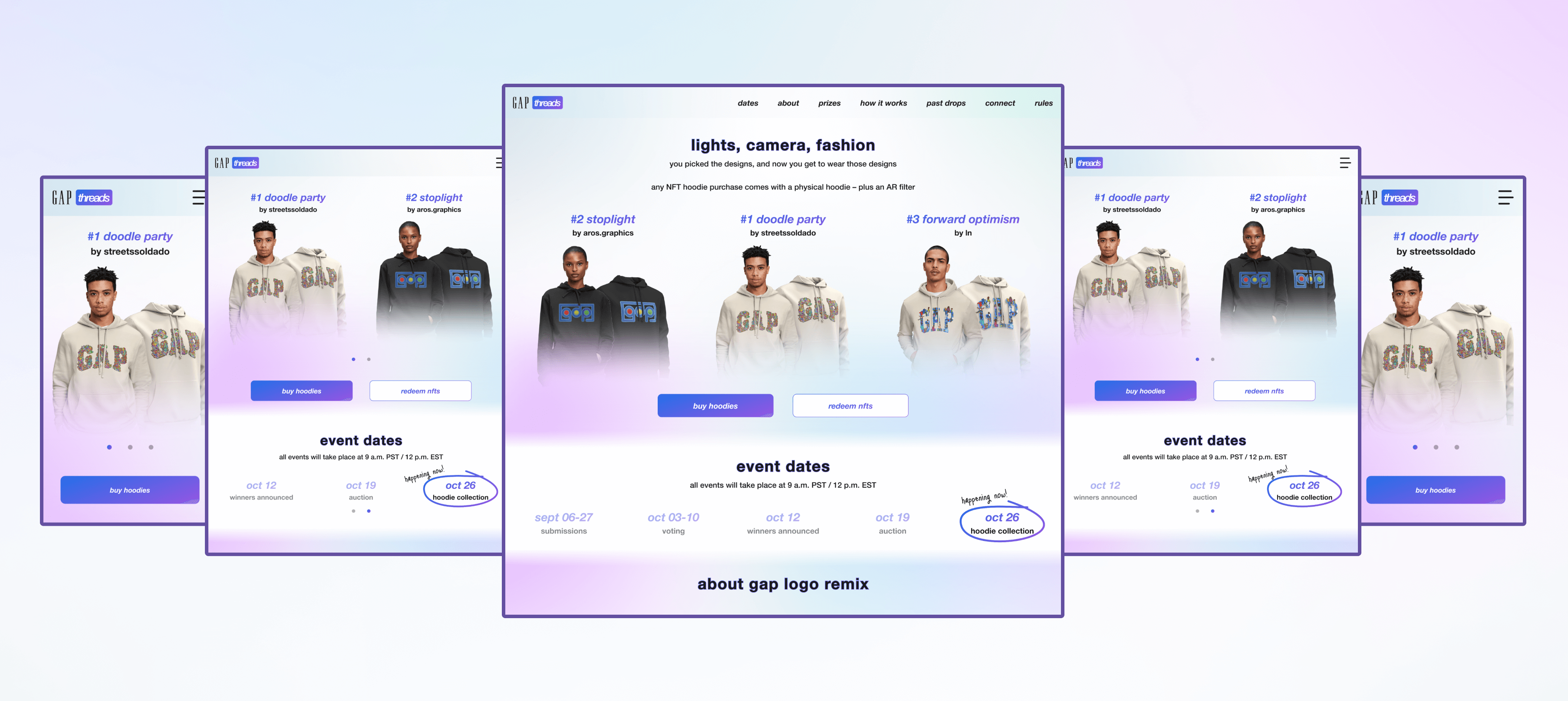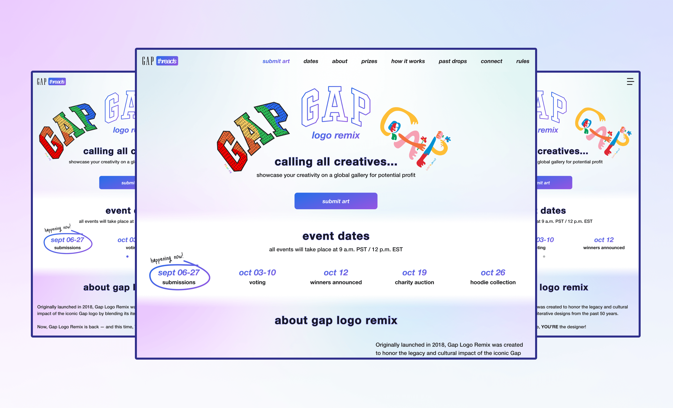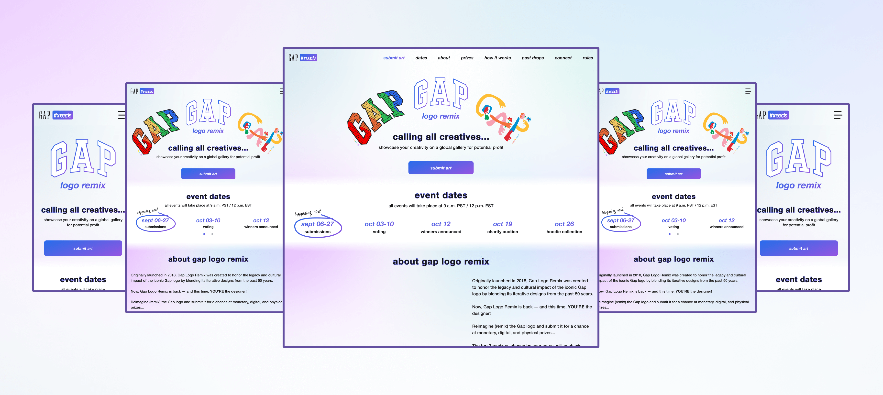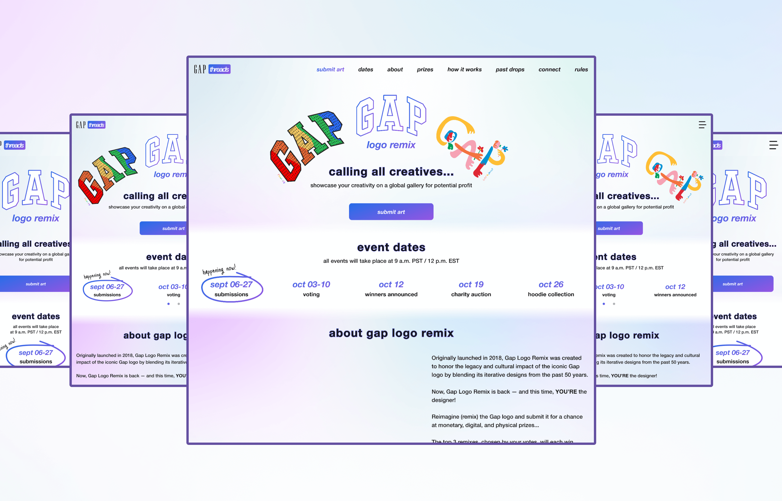 Gap Logo Remix was split into five phases, with each needing its own set of marketing material, social media & web graphics, and, of course, UI/UX designs: