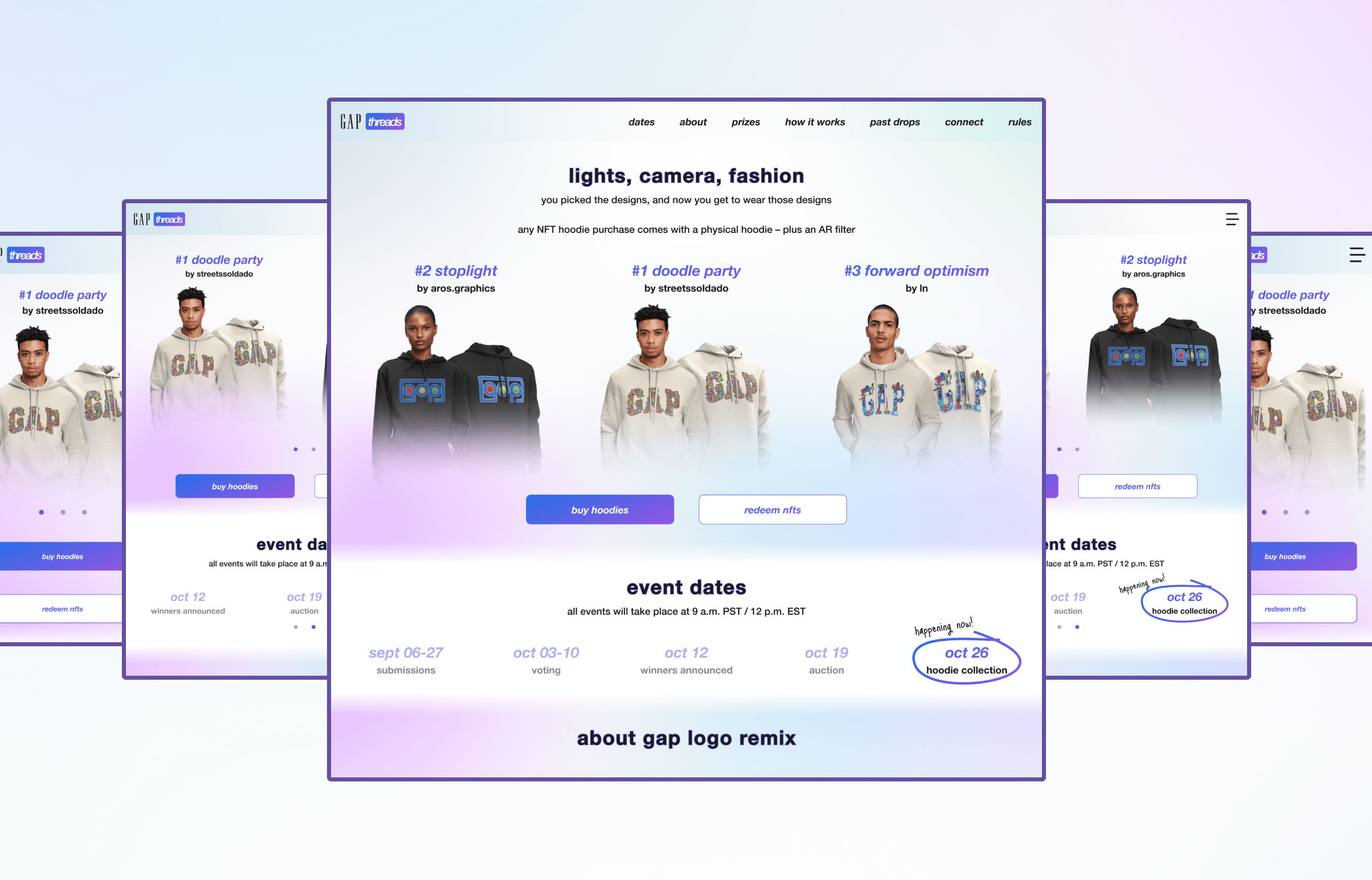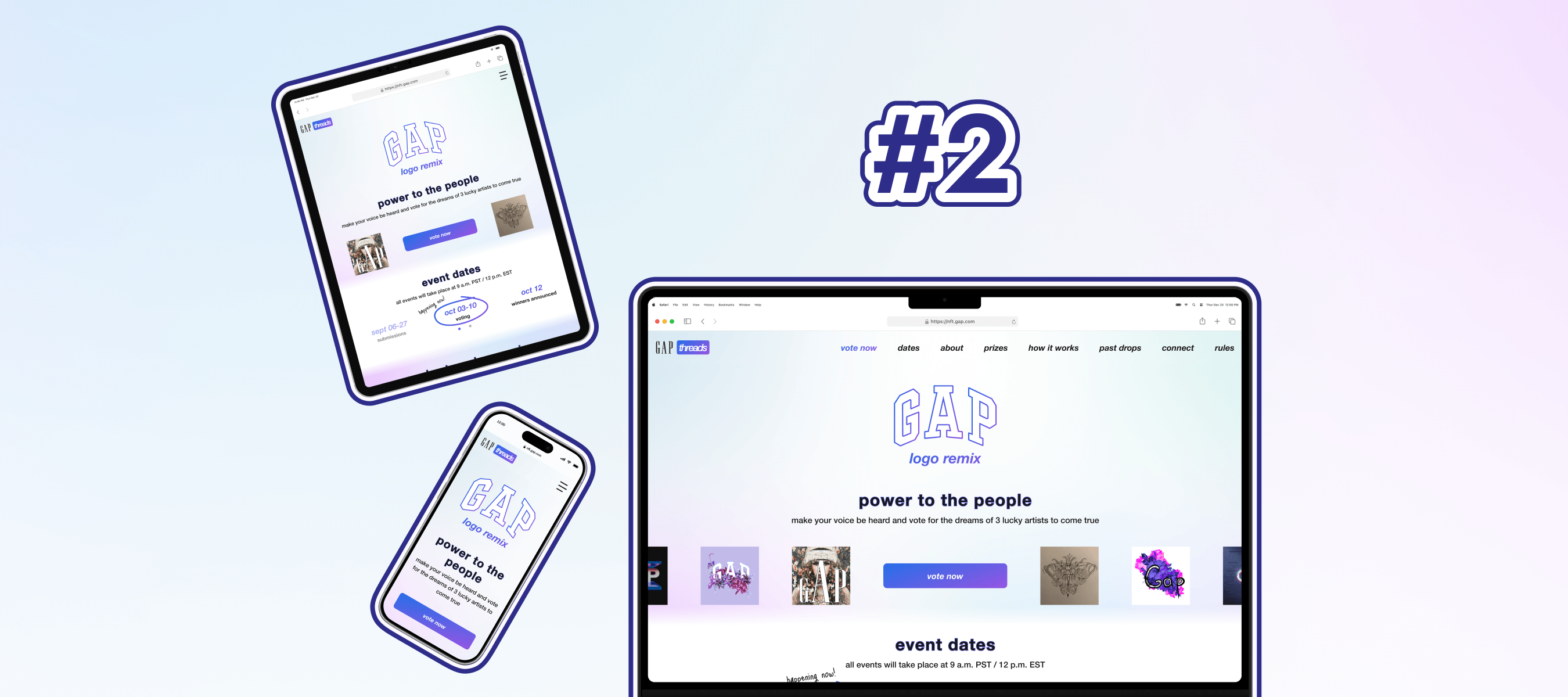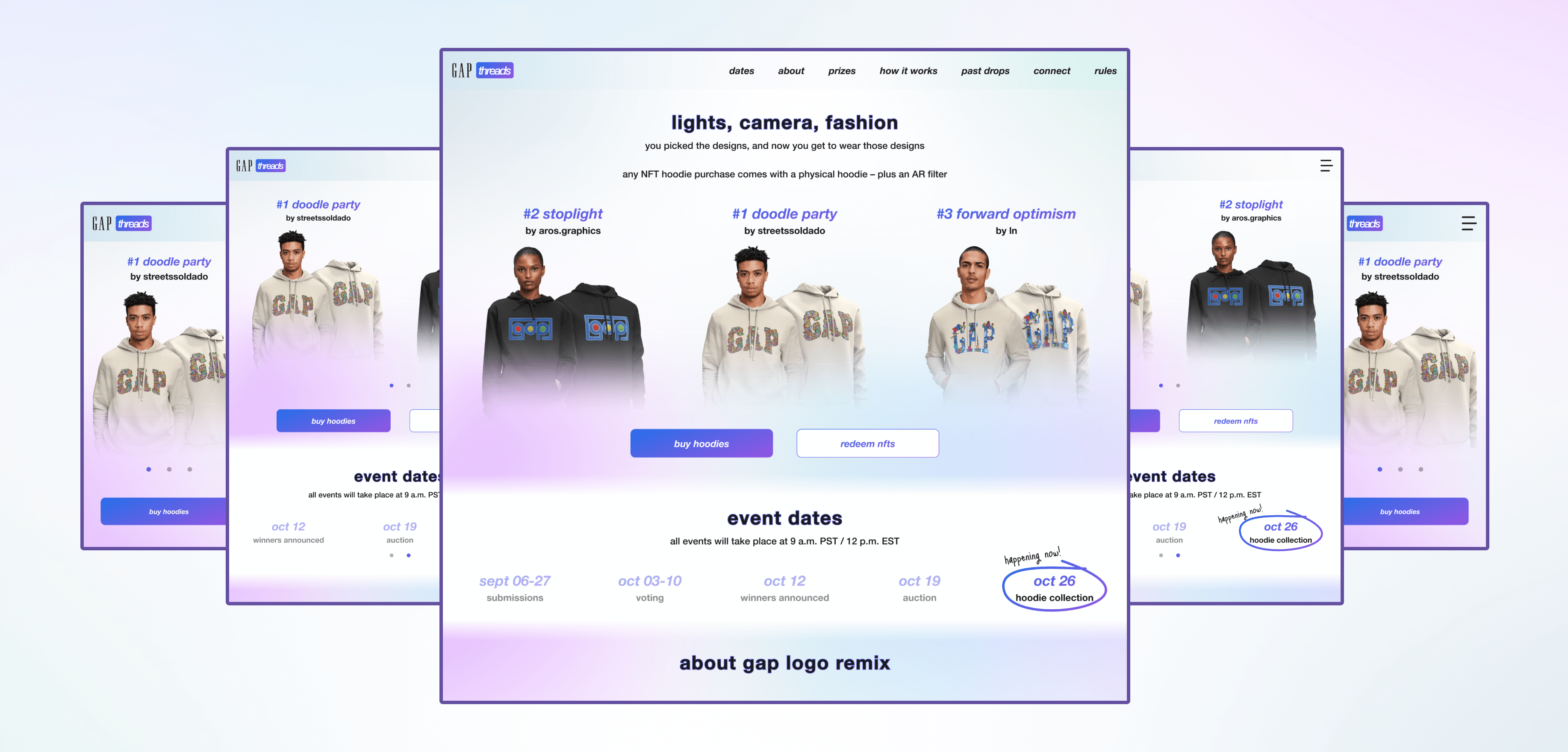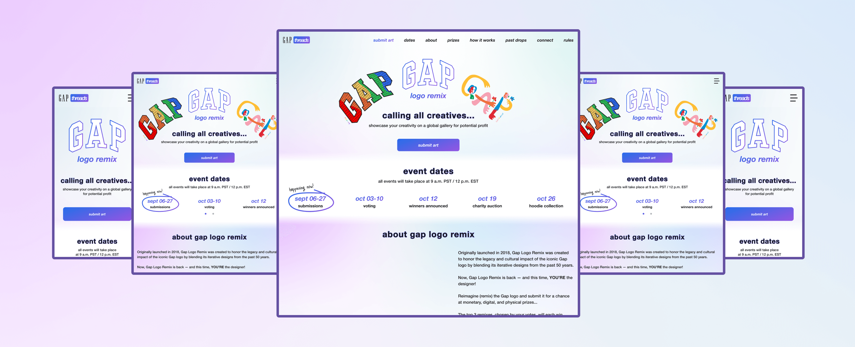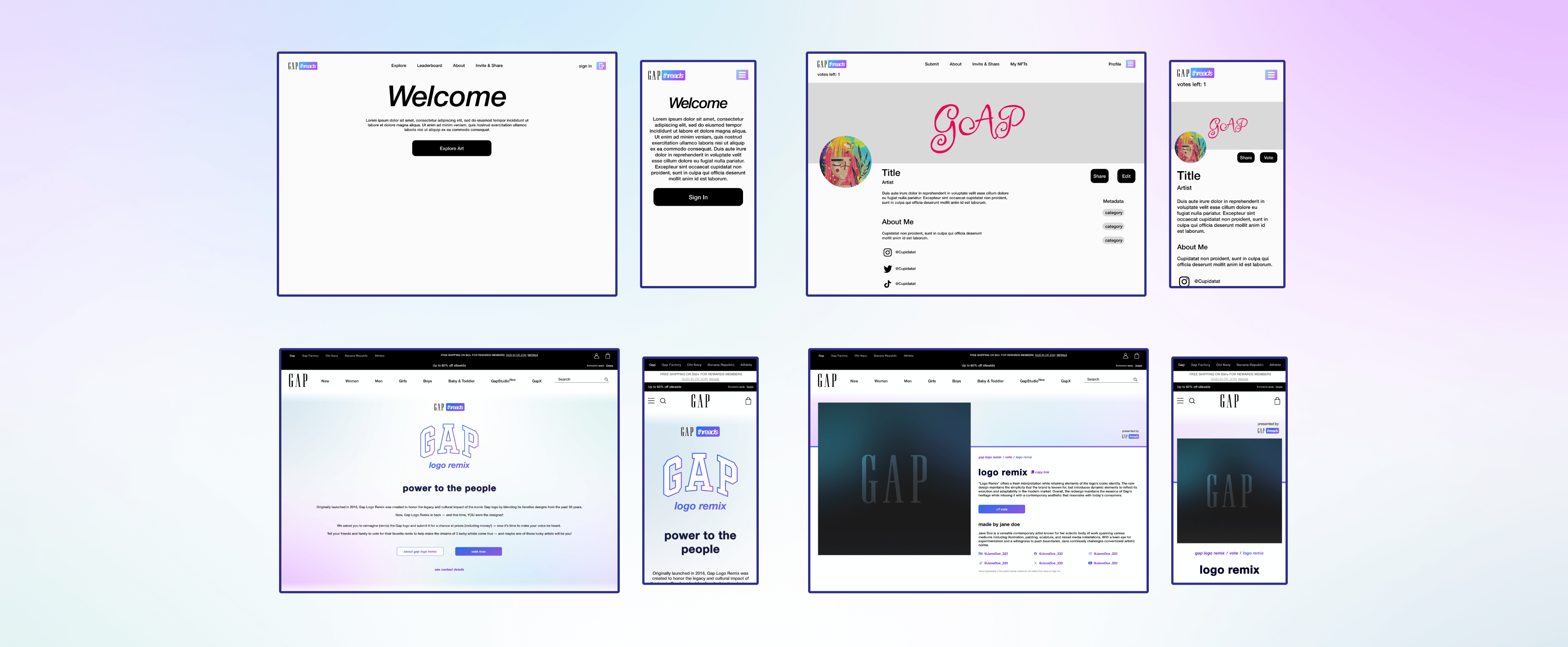 Gap Logo Remix was split into five phases, with each needing its own set of marketing material, social media & web graphics, and, of course, UI/UX designs: